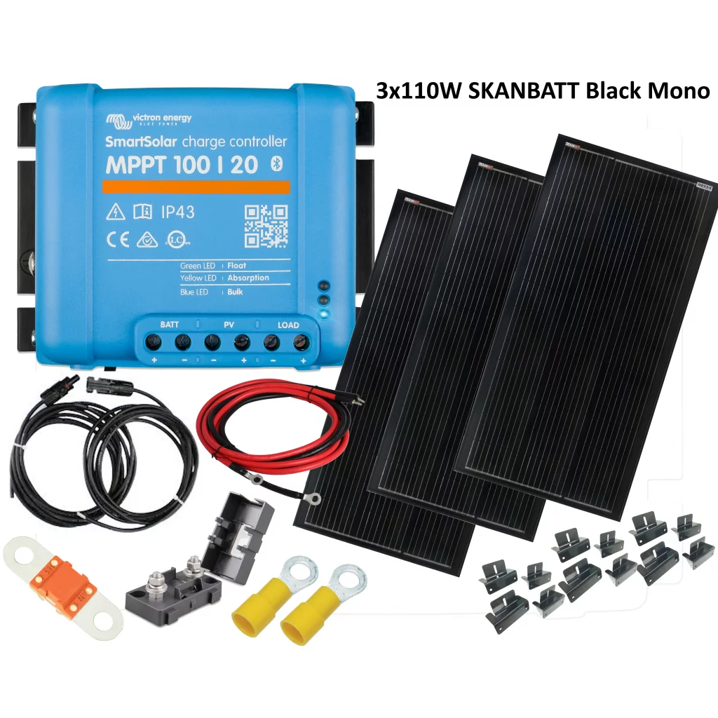 SKANBATT Solcellepakke HYTTE - Medium - 12V, 24V og 48V - 330W (3x110W)