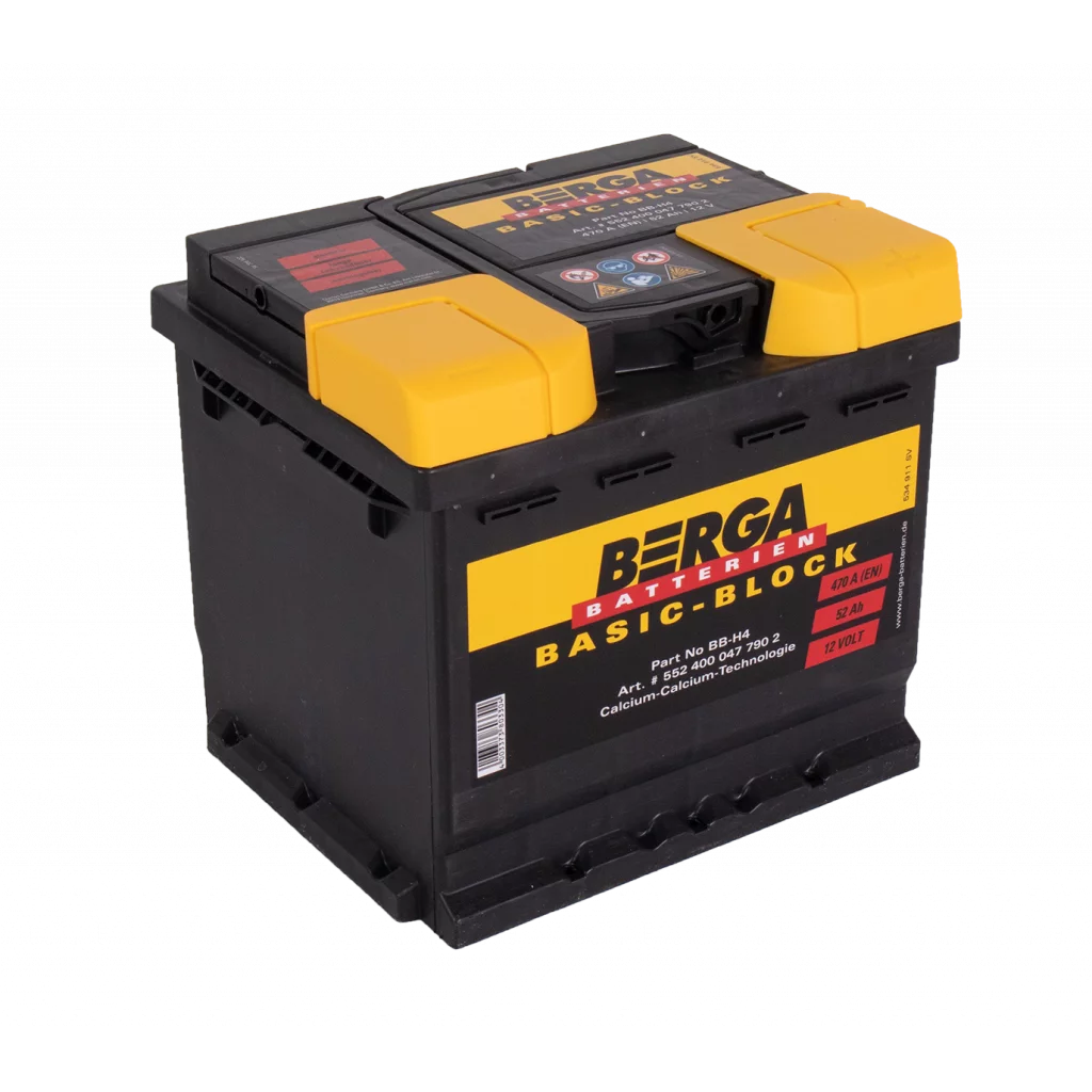 BERGA Basic Block er et robust og driftssikkert bilbatteri utviklet for standard kjøretøy med normalt energibehov. Med 12 volt spenning, 52 ampèretimer og en kaldstartstrøm på 470 CCA, leverer