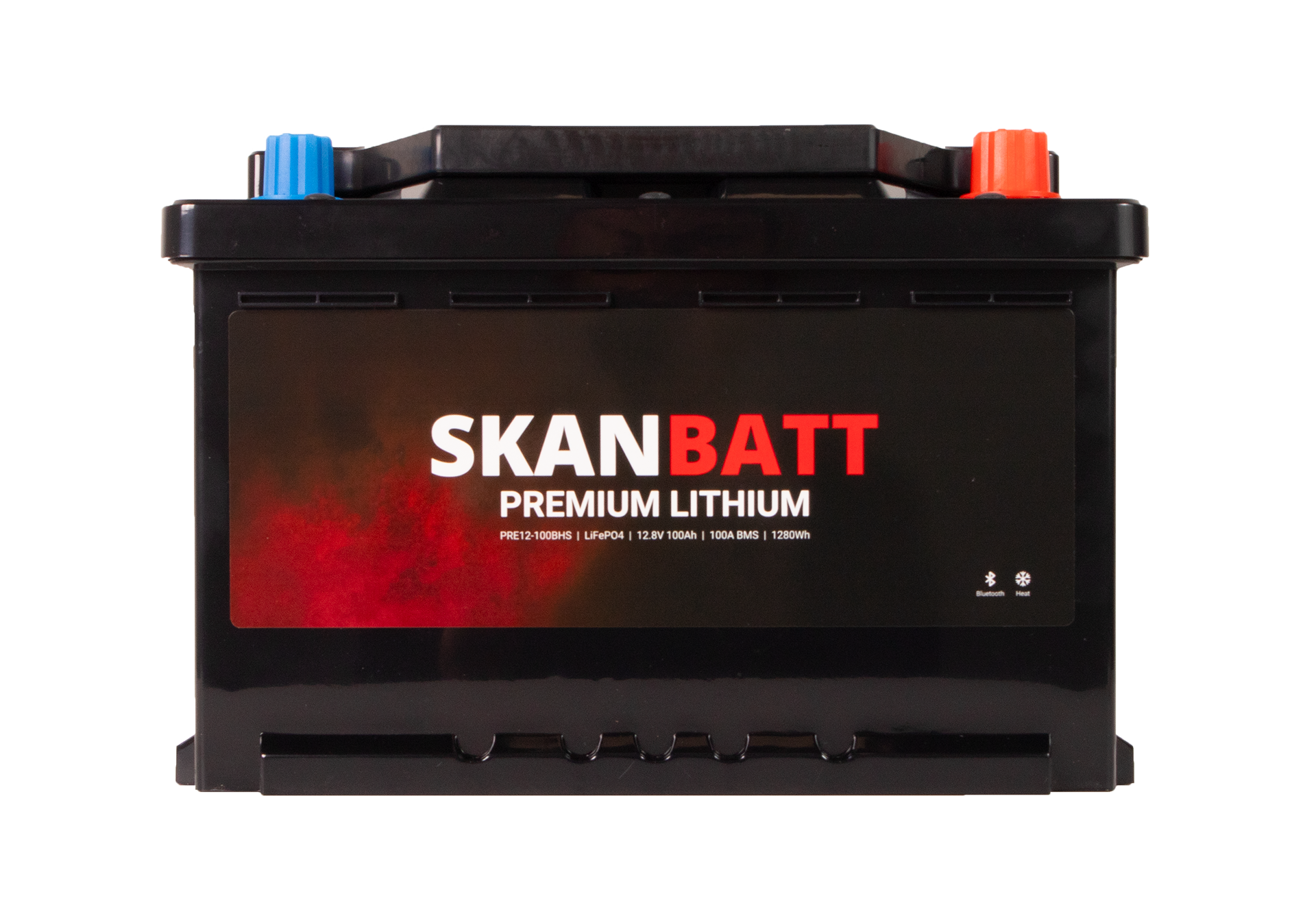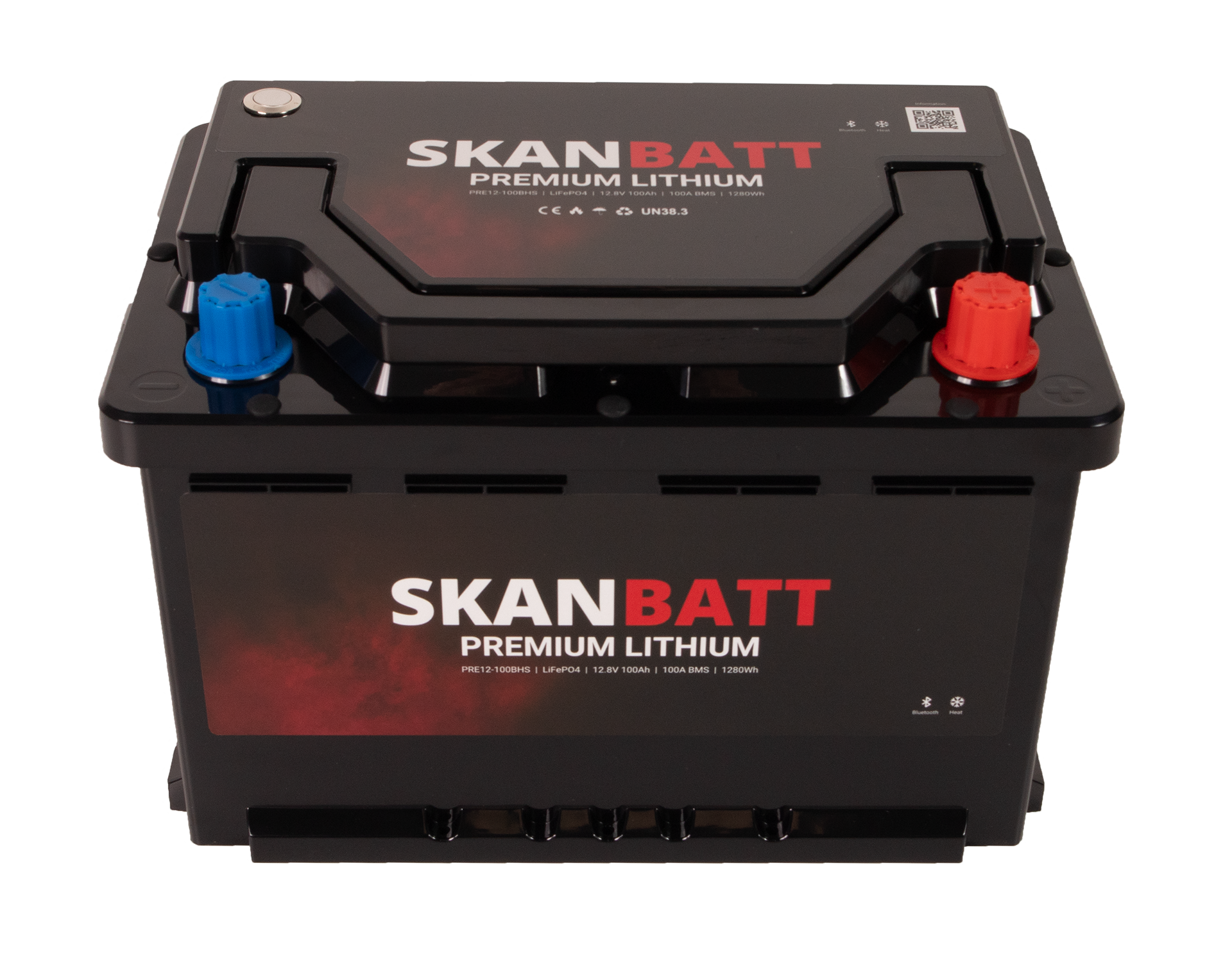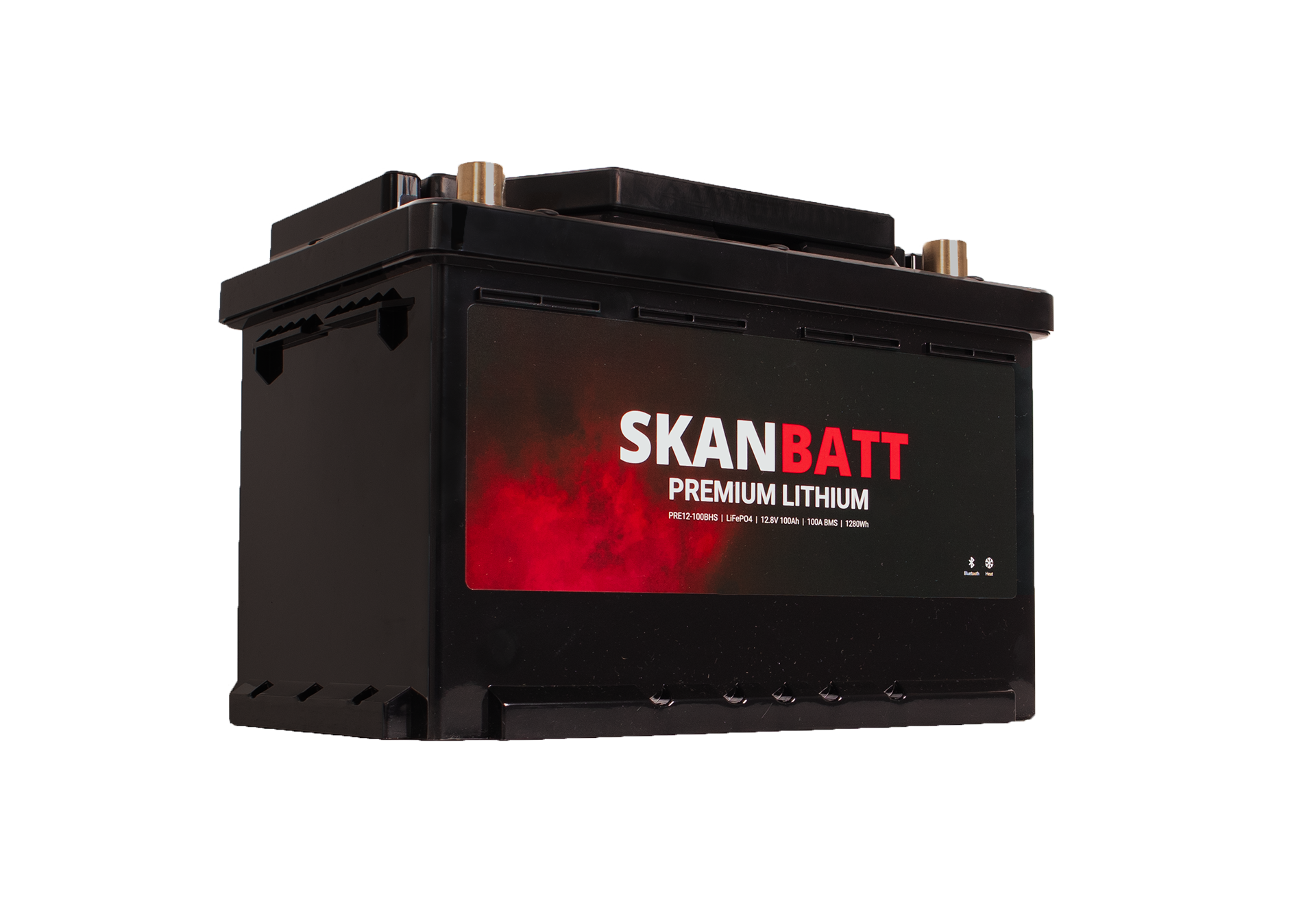 PRE12-100BHS er en del av Skanbatt PREMIUM-serien. Batteriet kombinerer markedets beste LiFePO₄-celler med avansert og robust BMS, tilpasset nordiske forhold. Kompakt DIN-format med høy energitetthet gir mye energi i en liten kasse – et ideelt valg i bobil og andre installasjoner der plassen er begrenset.