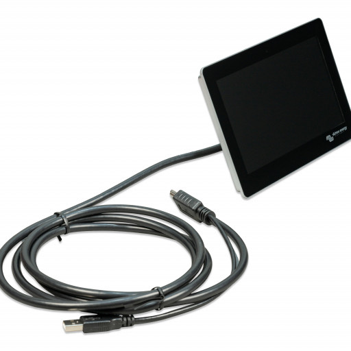 Skjermen er skrudd på toppen av et dashbord og eliminerer behovet for perfekte utskjæringer (som med ColorControl GX) og er kun koblet gjennom én kabel.