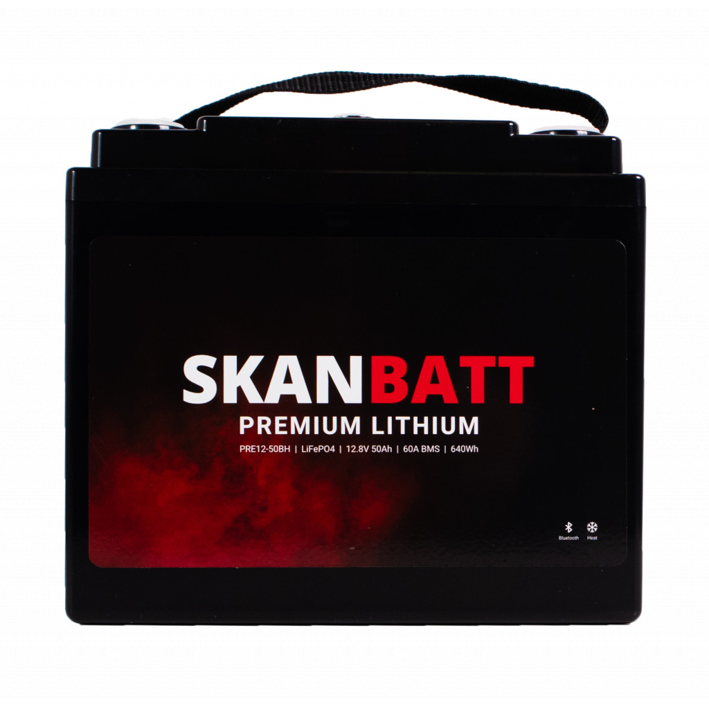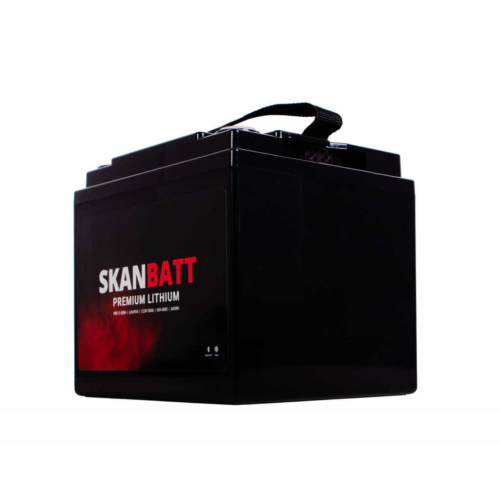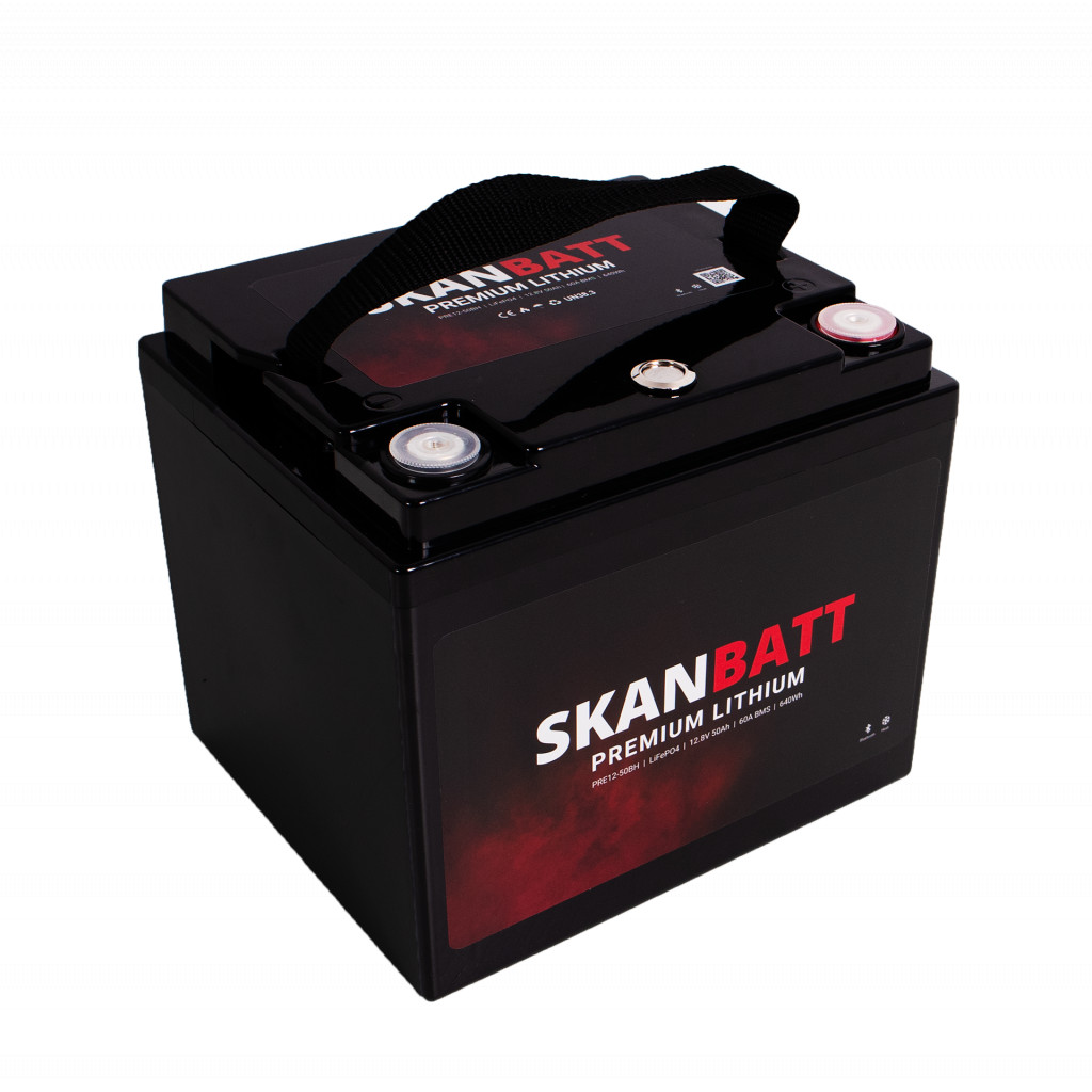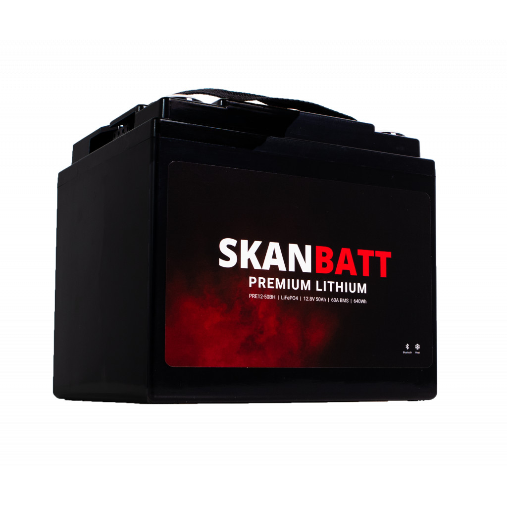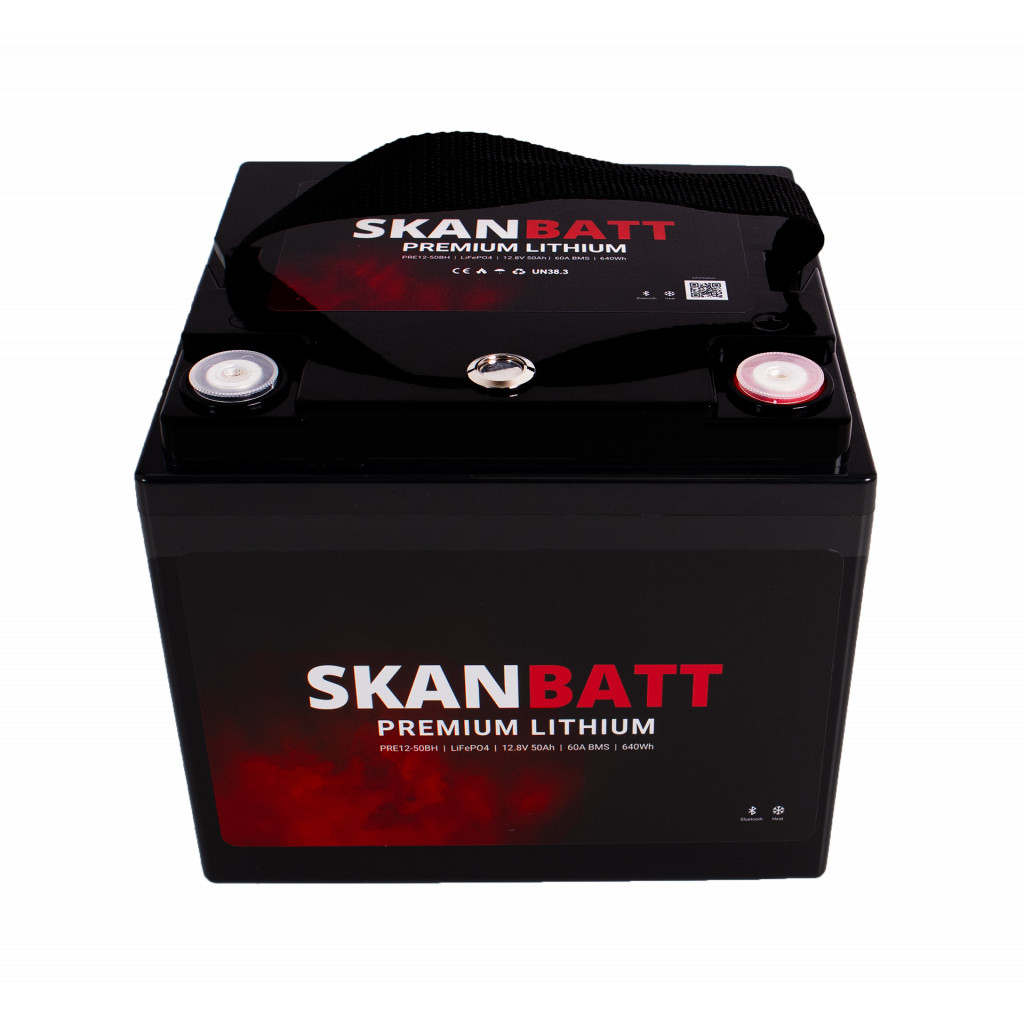 PRE12-50BH er en del av Skanbatt PREMIUM-serien. Batteriet kombinerer kvalitetsceller med avansert og robust BMS, tilpasset nordiske forhold. 12 V / 50 Ah gir solid energitetthet i en svært kompakt og lett kasse – ideelt der plassen er begrenset, men du likevel vil ha trygg og stabil strøm.