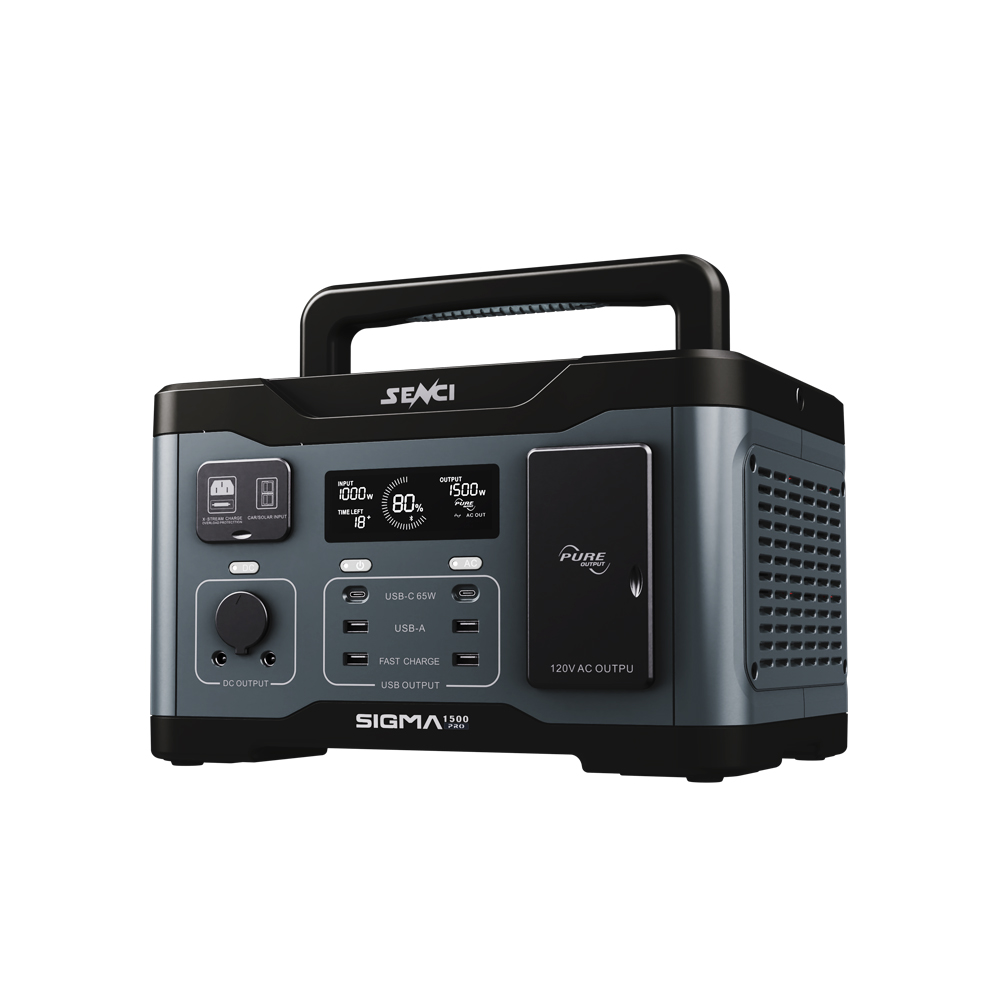 Senci SIGMA1500 er en pålitelig og fleksibel kraftstasjon som gir deg trygg strøm uansett hvor du er. Med 1152 Wh kapasitet og en kraftig inverter på 1500 W