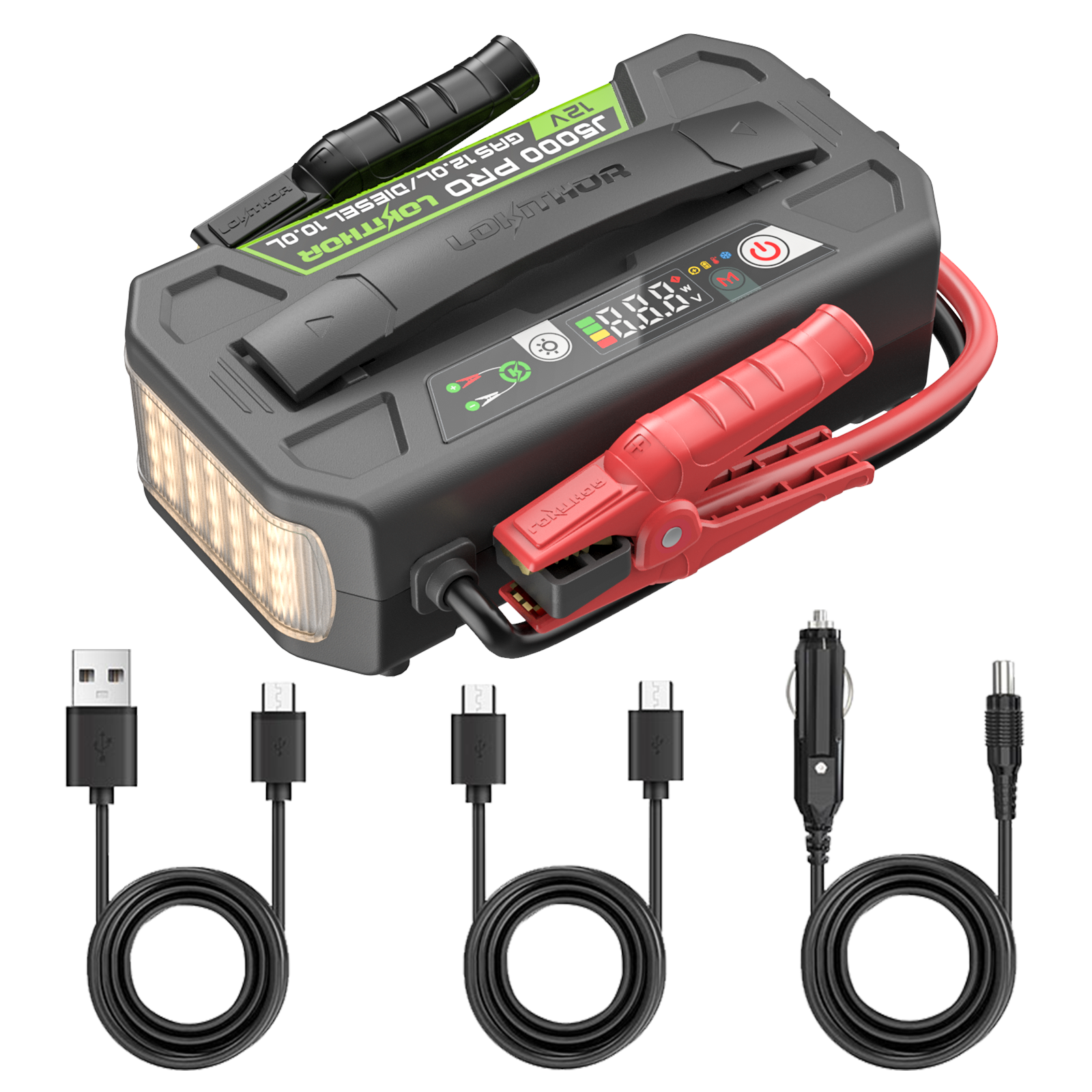 Lokithor J5000PRO – Heavy Duty starthjelp 12 V / 5000 A med 100 W hurtiglading