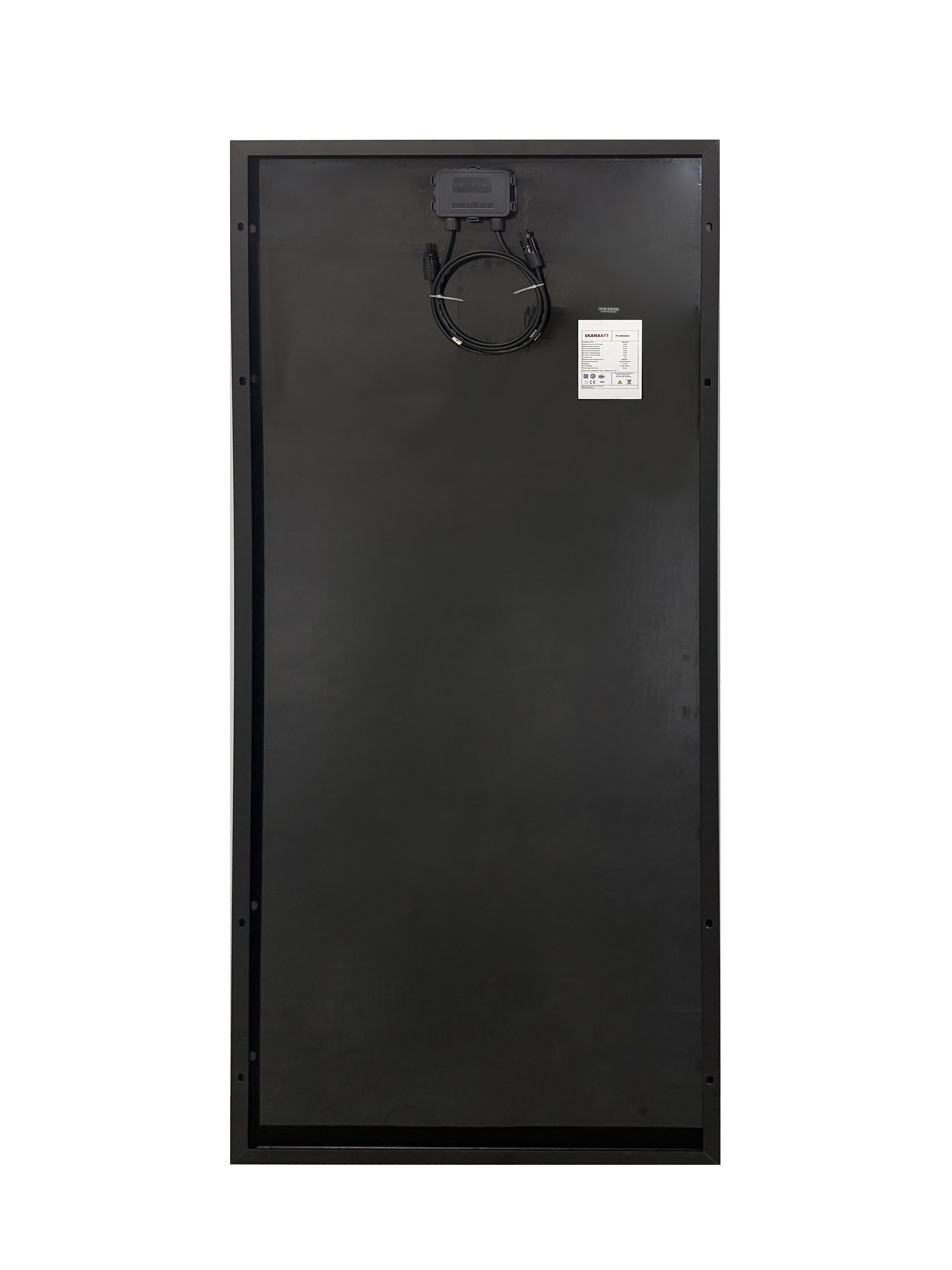 SNB-320W leveres med IP68 koblingsboks, 4 mm² kabler på ca. 90 cm og MC4-kontakter. Panelet er klart til bruk med MPPT-regulator i 24V, 48V eller større batterisystemer, avhengig av hvordan panelene seriekobles.