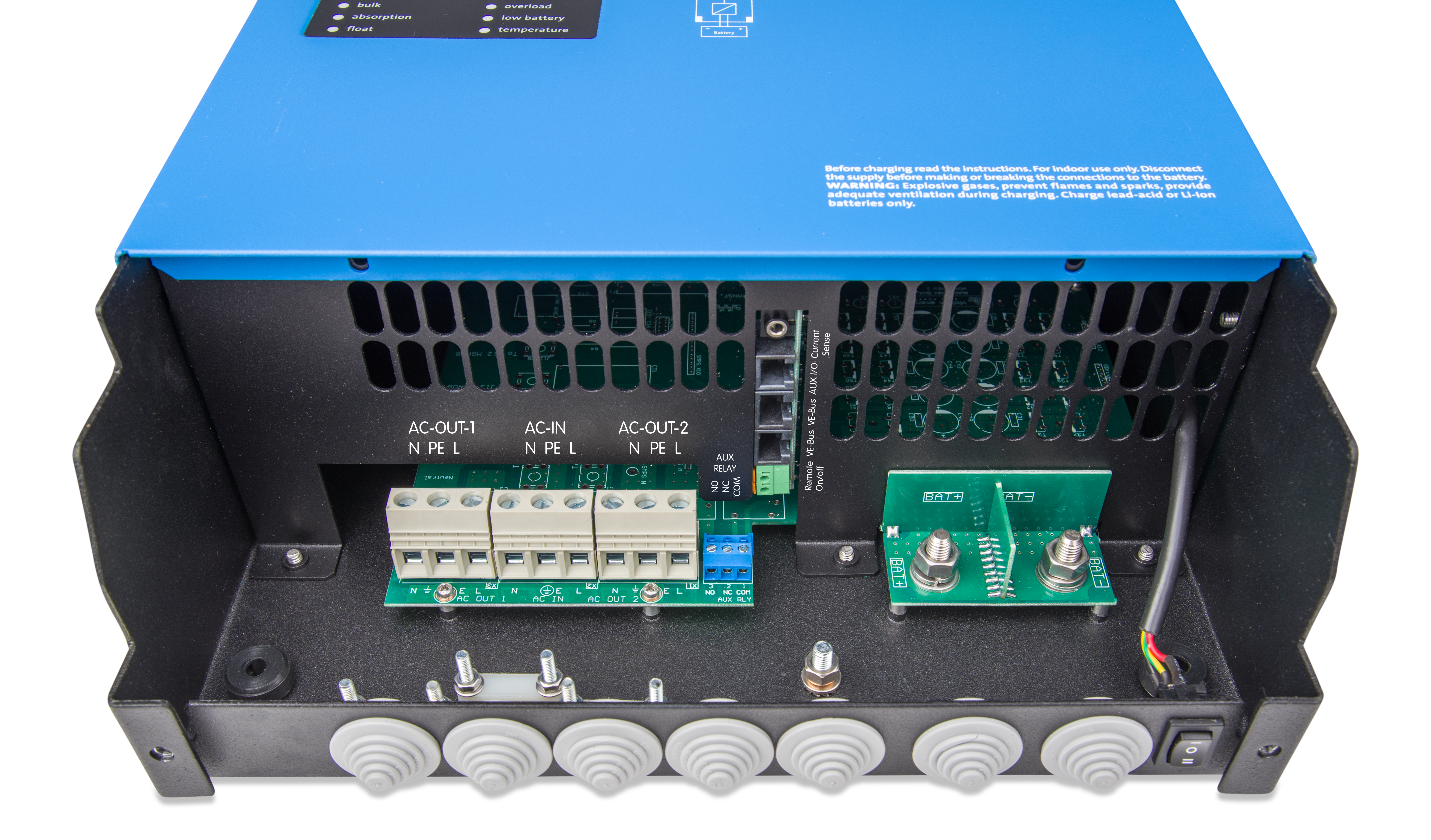 Den har alle funksjonene i MultiPlus, pluss et eksternt strømtransformatoralternativ for å implementere PowerControl og PowerAssist og å optimalisere selvforbruk med ekstern strømsensing (maks 32A).