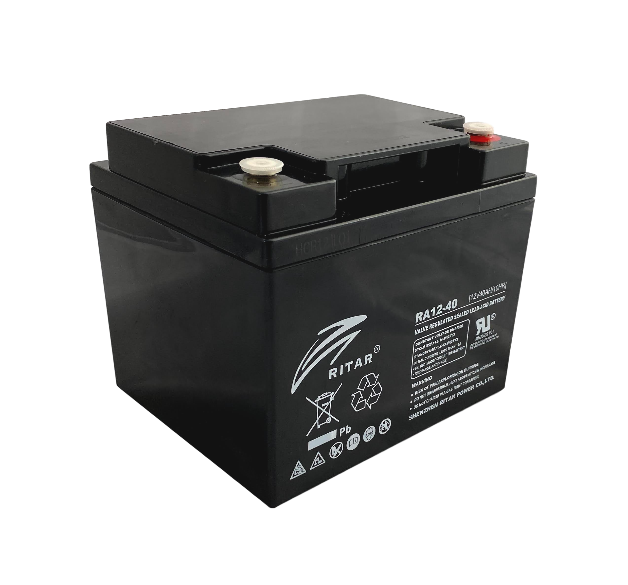 - RITAR AGM Deep Cycle Batteri 12V 40Ah (198x166x171mm) +høyre