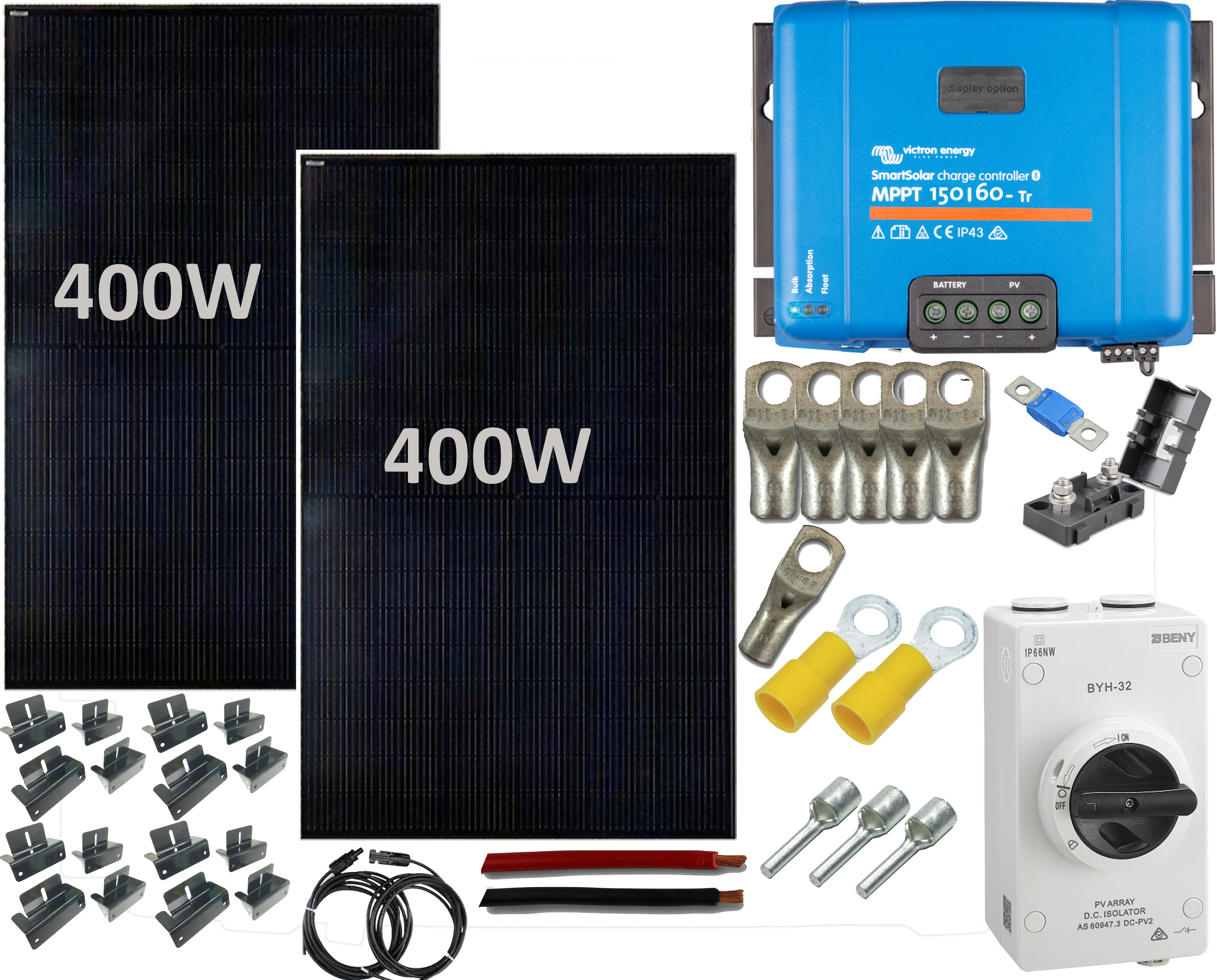 - SKANBATT Solcellepakke HYTTE - Stor - 12V - 800W (2x400) m/veggstativ