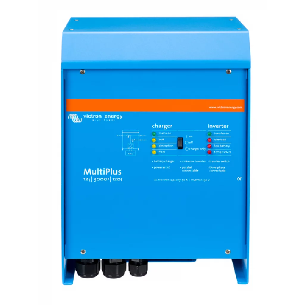 MultiPlus er en kraftfull ekte sinuskurve inverter, en avansert batterilader som har adaptiv ladeteknologi og høyhastighets AC overføring i ett enkelt, kompakt kabinett.