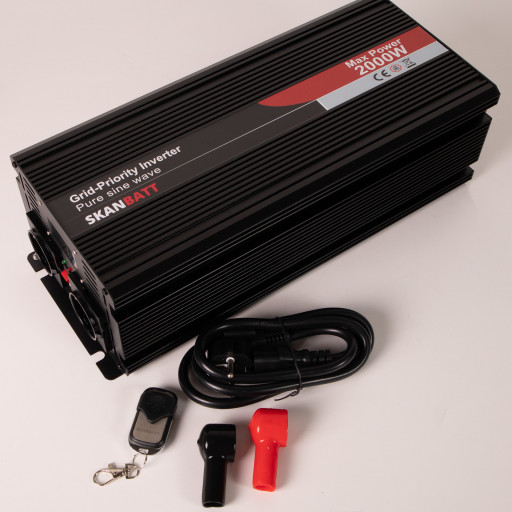 INVERTER 12V 2000W Ren sinus med nettprioritering og fjernkontroll / SB-NET2000