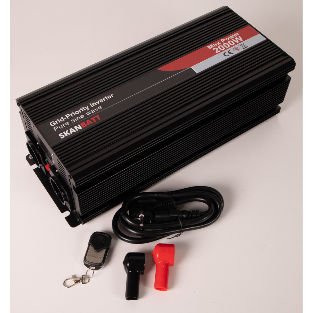 INVERTER 12V 2000W Ren sinus med nettprioritering og fjernkontroll / SB-NET2000