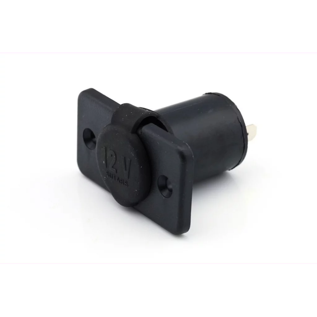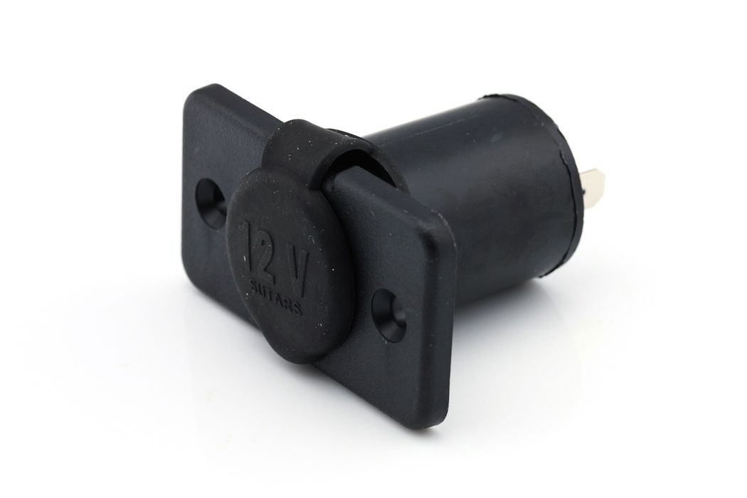 Stikkontakt/Sigarettenneruttak 12V / 16A maks Monteres med to skruer og et innsatshull med Ø 27 mm. Avstanden mellom skruehullets sentrum er 40 mm Vekt: 23 g