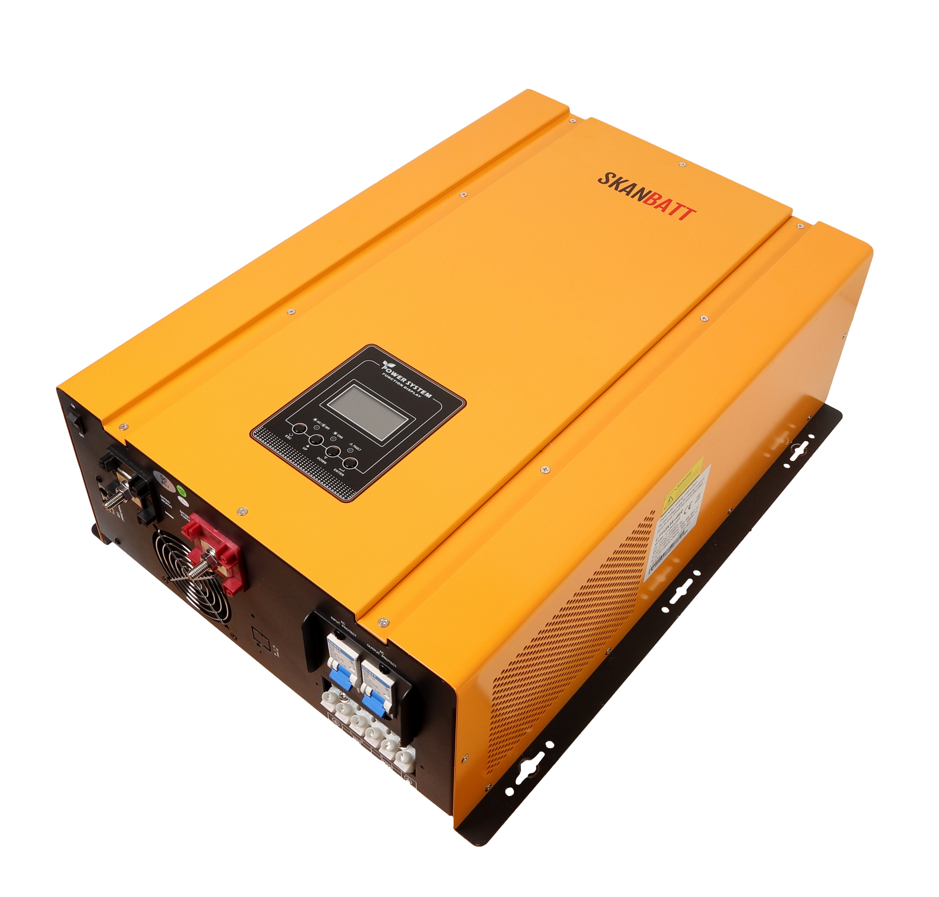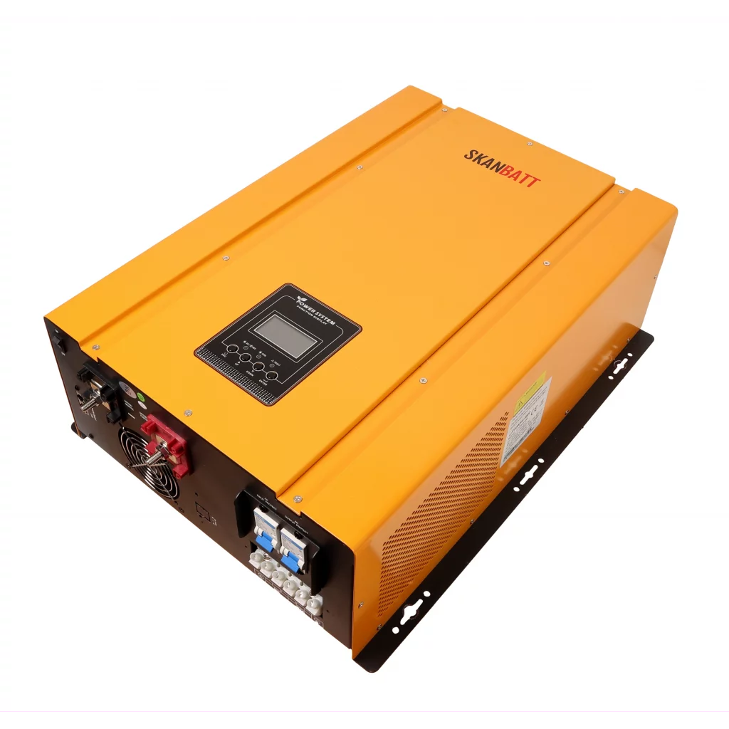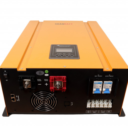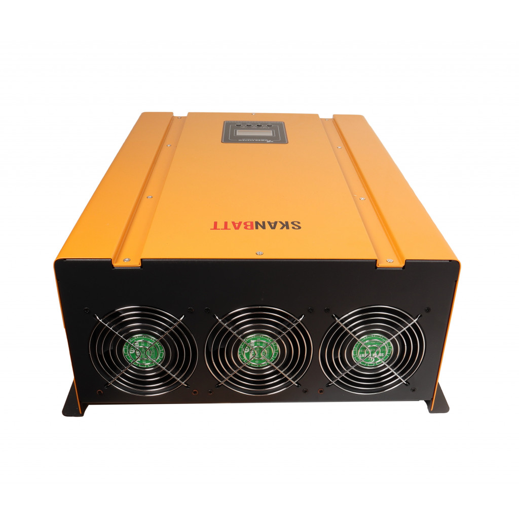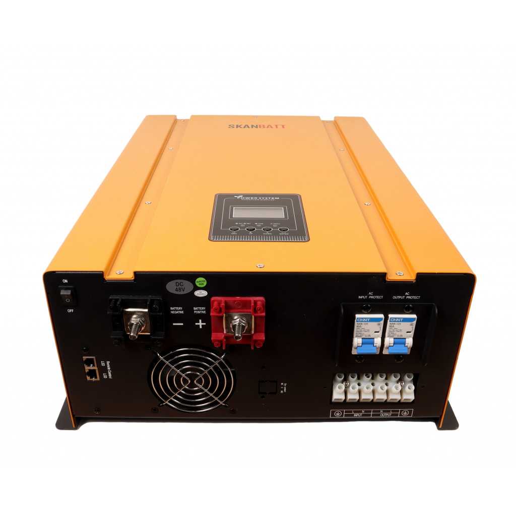 Her får du 10000W ren sinus inverter på 230V AC og en 75A batterilader på 48V DC.