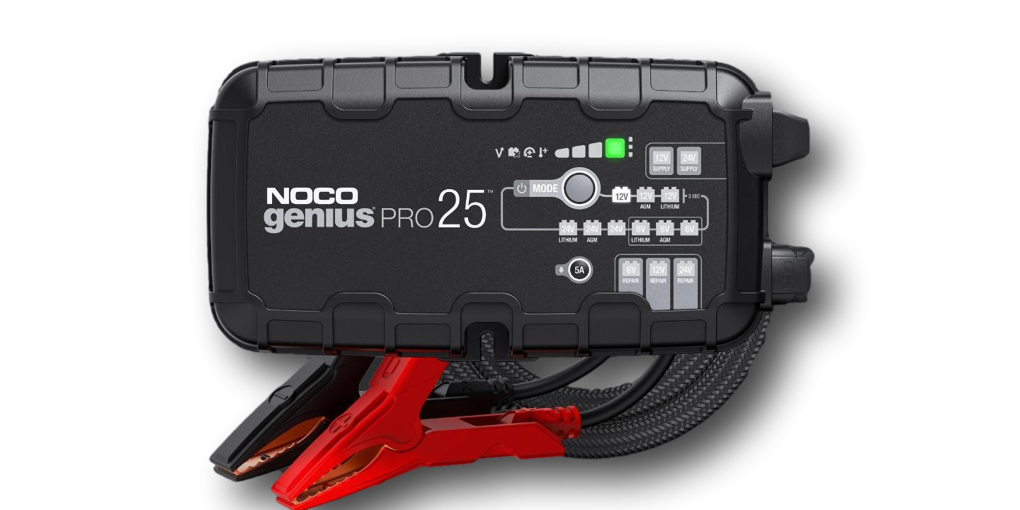 Noco GENIUSPRO25 er en kjekk automatisk universal lader på 25A (6V, 12V) og 12.5A (24V)