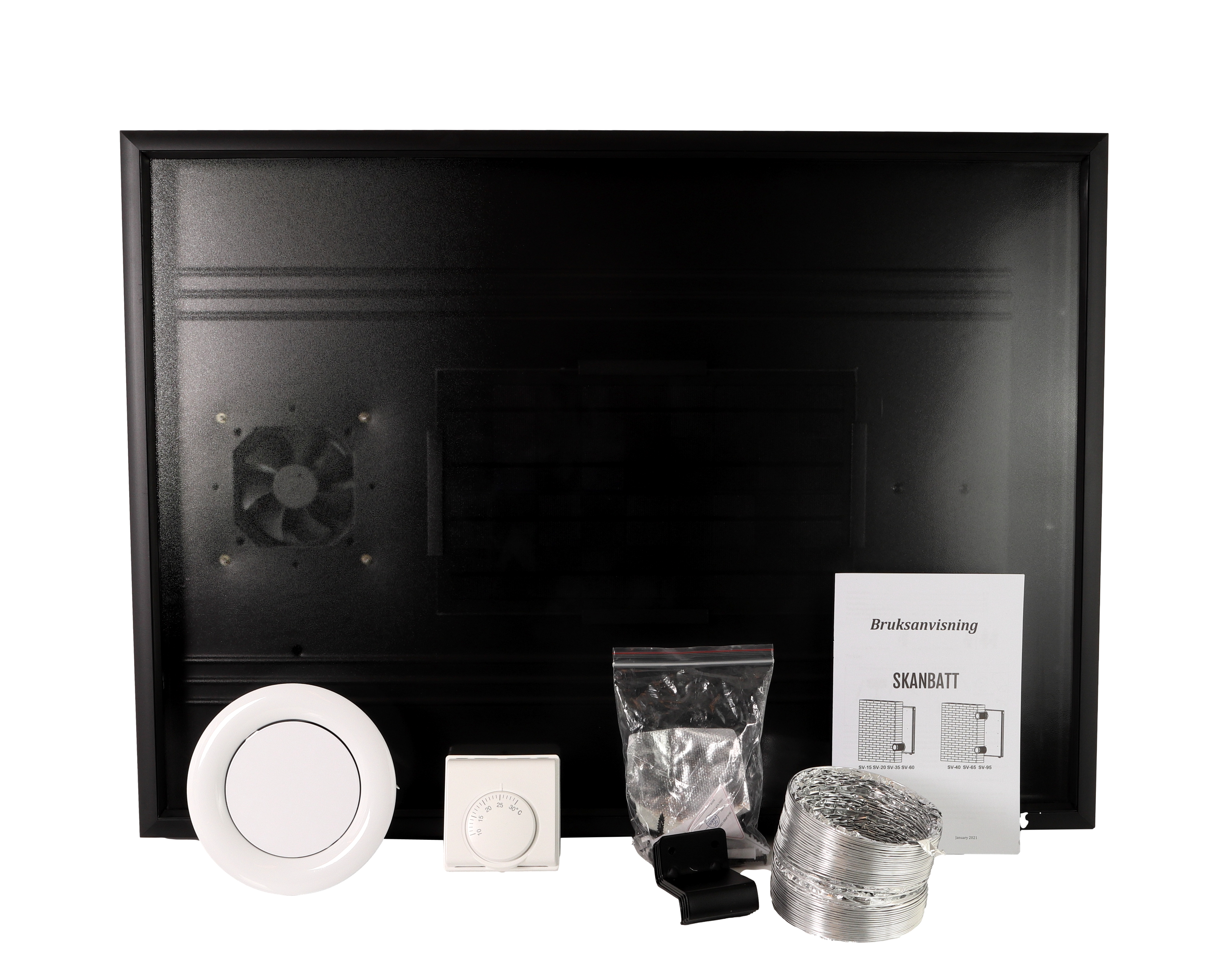 Den friske luften blåser inn gjennom luftinntaket, og den medfølgende termostaten lar deg stille ventilatoren inn på ønsket temperatur.