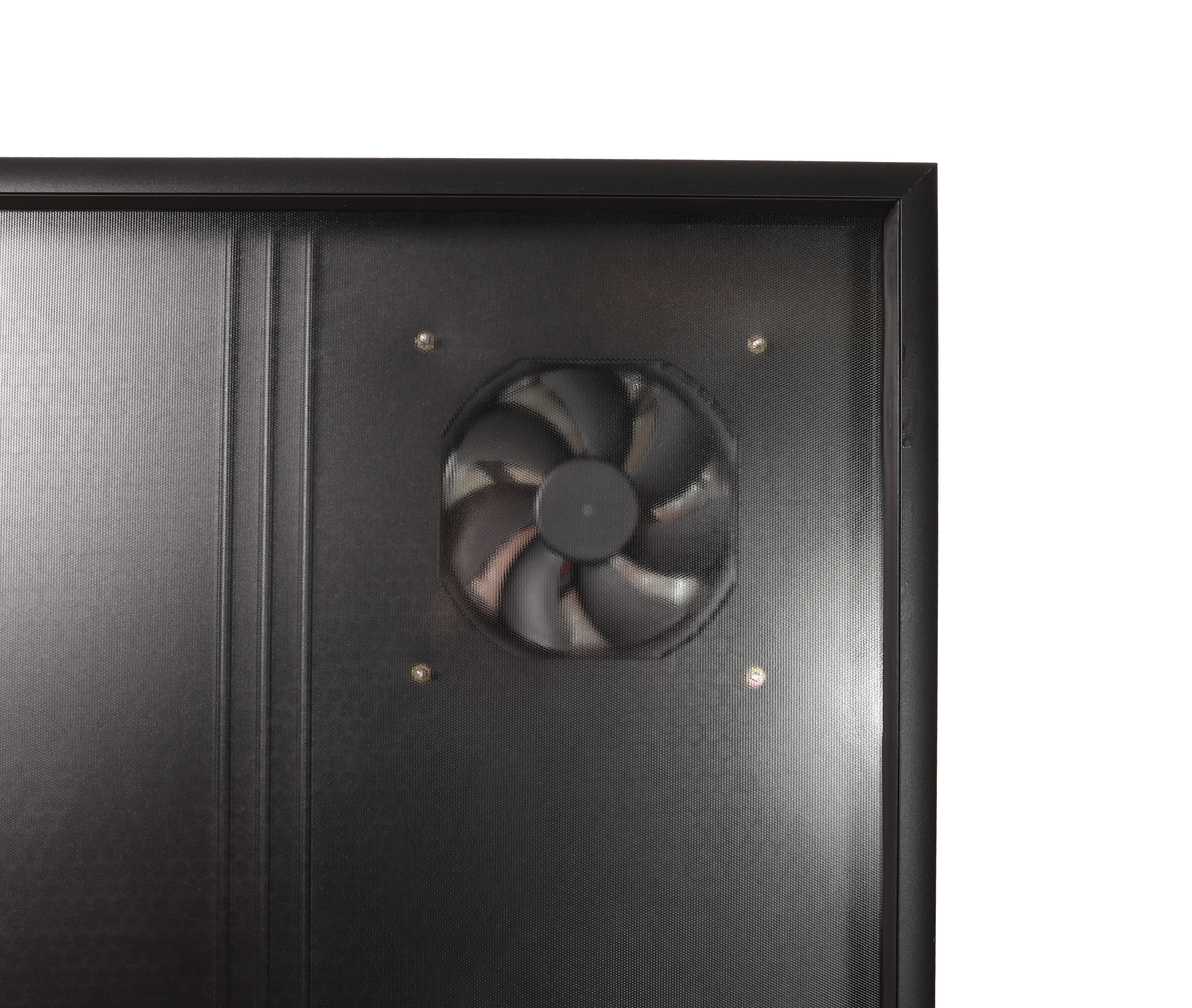 - Den innebygde solenergidrevne DC viften suger kjølig eller frisk luft fra det ene eller begge luftinntakene avhengig av om du ønsker oppvarming eller utskifting av luften.