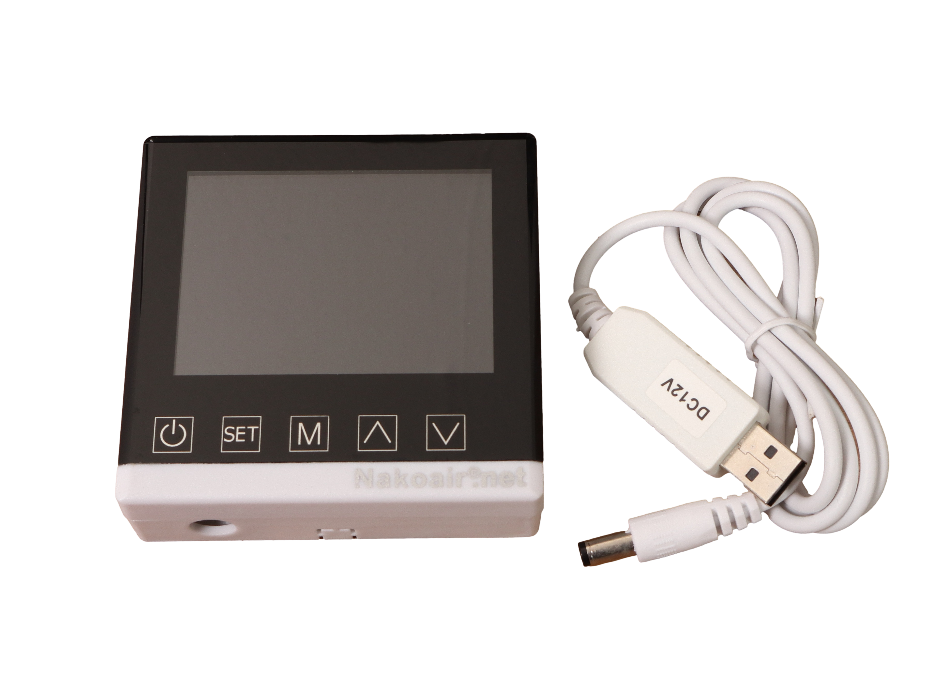Den friske luften blåser inn gjennom luftinntaket, og den medfølgende termostaten lar deg stille ventilatoren inn på ønsket temperatur.