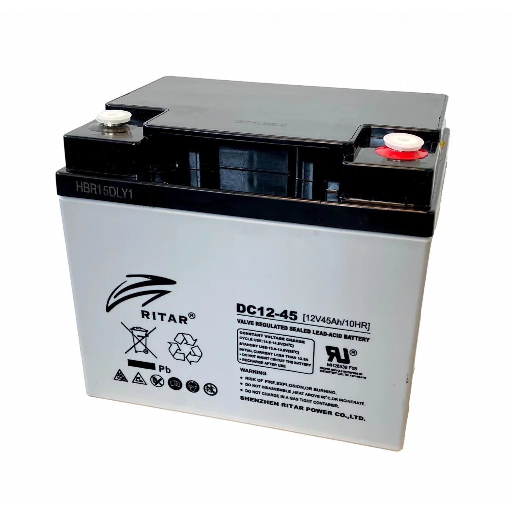 RA12-45 fra Ritar er et forseilet AGM deep cycle-batteri med høy pålitelighet og lavt vedlikeholdsbehov. Det egner seg svært godt til tekniske installasjoner som UPS,