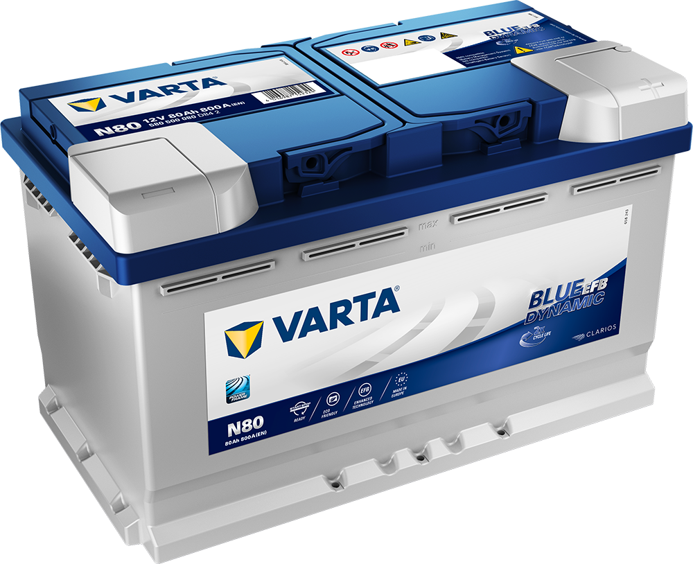 - VARTA EFB (Forbedret våtcelleteknologi) gir høy og stabil ytelse for biler med mye utstyr