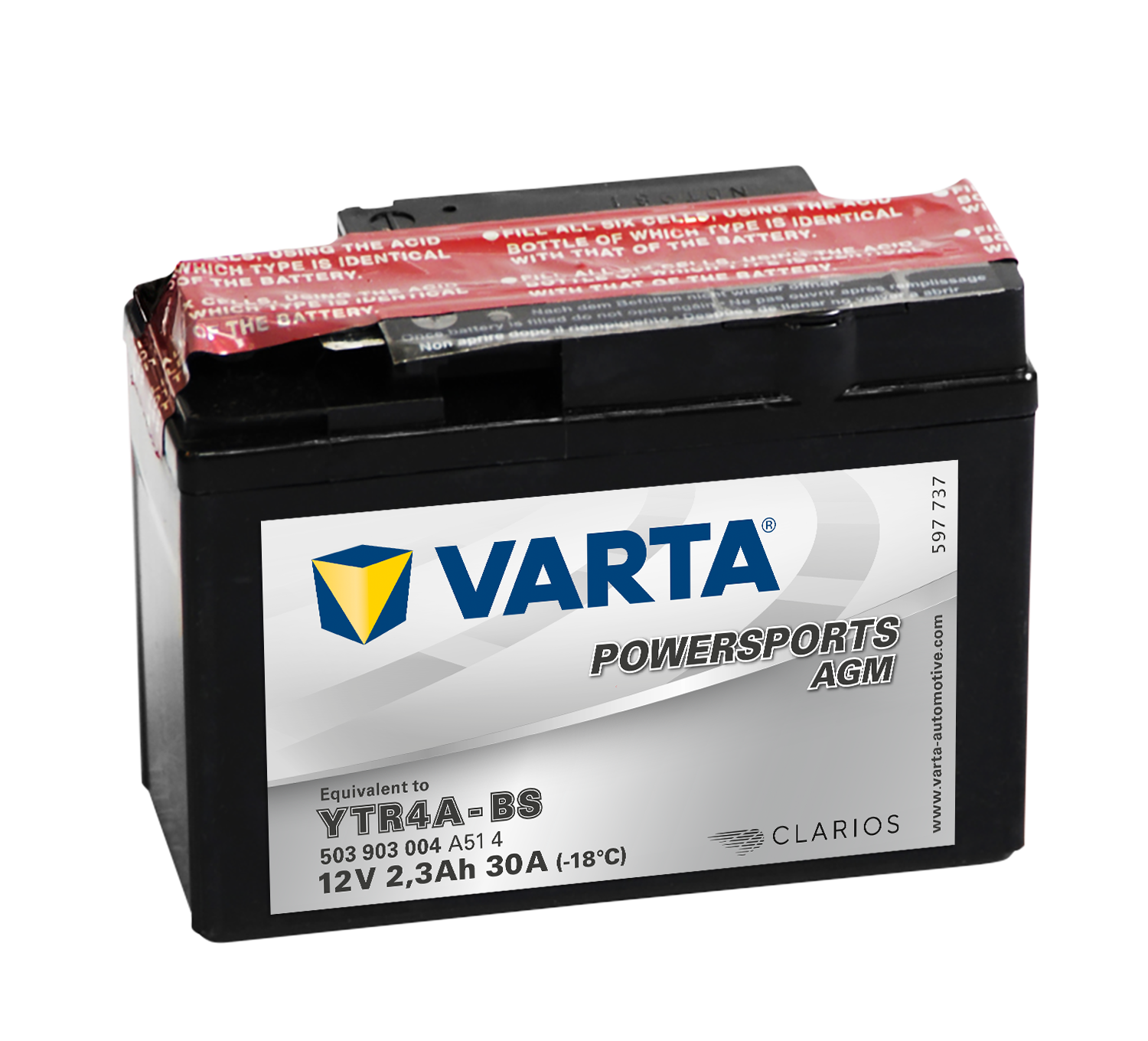 - VARTA AGM MC Batteri 12V 2,3AH 30CCA (113x49x85mm) +høyre YTR4A-BS