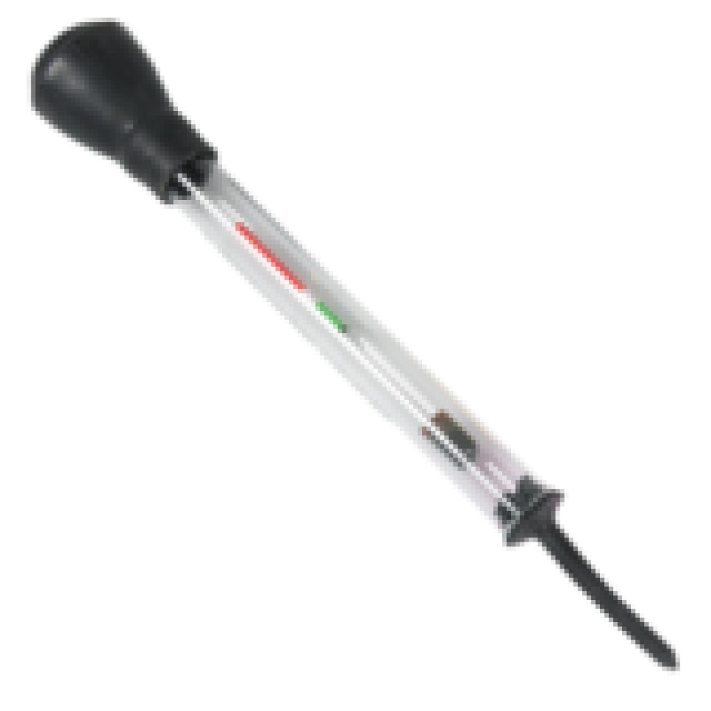 Kjekk syrevektsmåler for batterier med åpne korker. Forteller tilstanden på syren enkelt ved hjelp av fargekoder.
