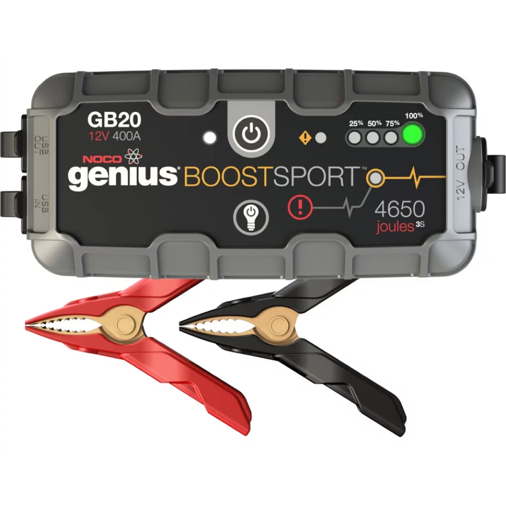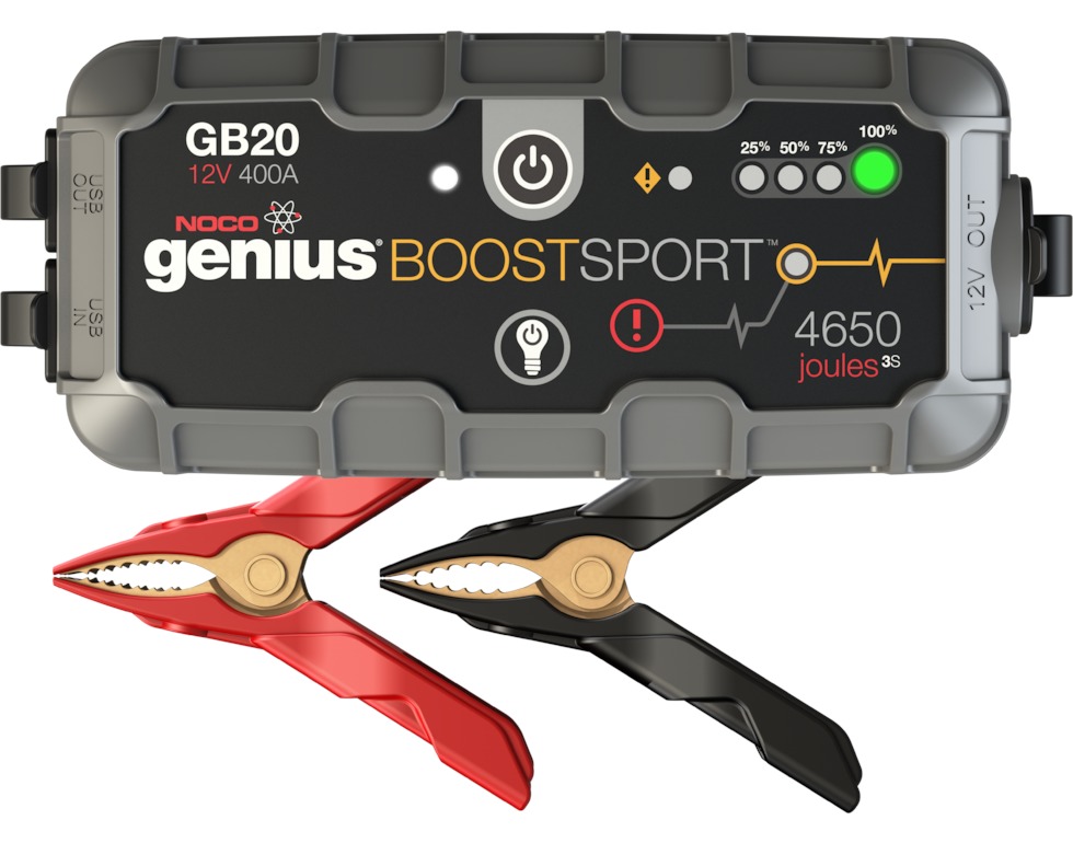 NOCO GB20 Startbooster: Utrolig kjekk og liten lithium startbooster fra Amerikanske Noco Denne er så liten og nett at den passer i hanskerommet i bilen, eller i sekken når du skal på tur. Her har du alltid med deg starthjelp om uhellet
