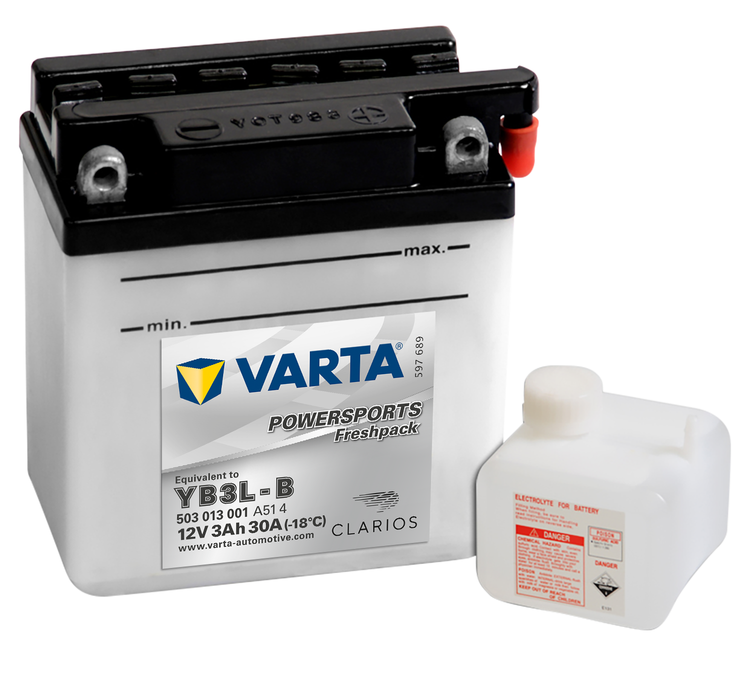 - VARTA MC Batteri 12V 3AH 30CCA (100x58x112mm) +høyre YB3L-B