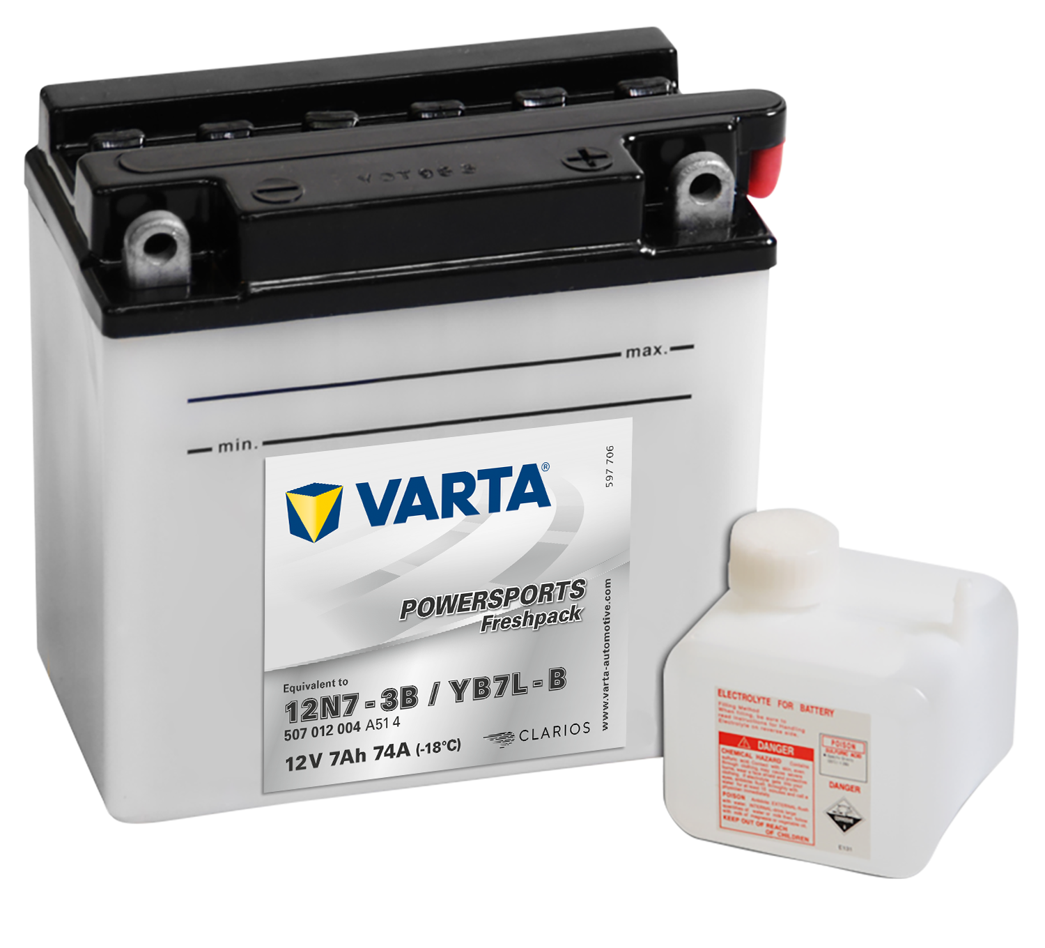 - VARTA MC Batteri 12V 7AH 74CCA (136x76x134mm) +høyre YB7L-B
