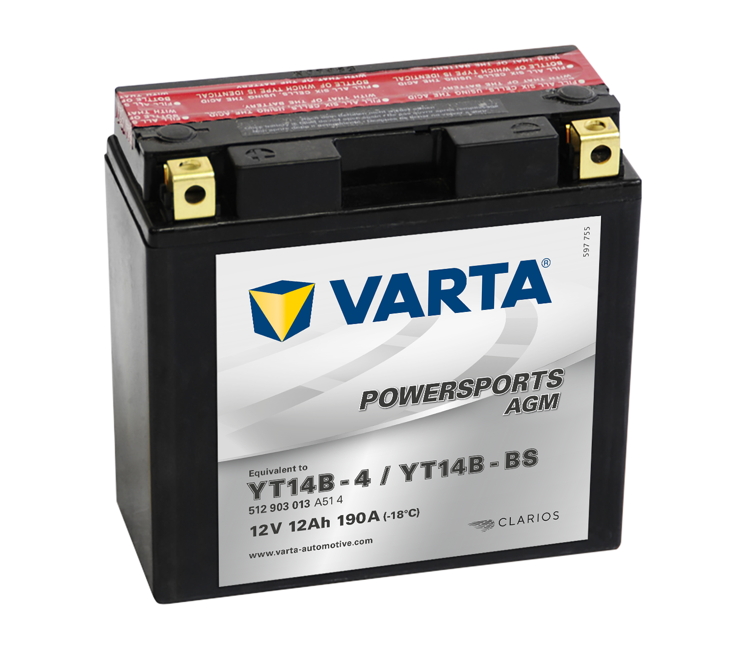 - VARTA AGM MC Batteri 12V 12AH 190CCA (152x70x150mm) +venstre YT14B-BS (513903)