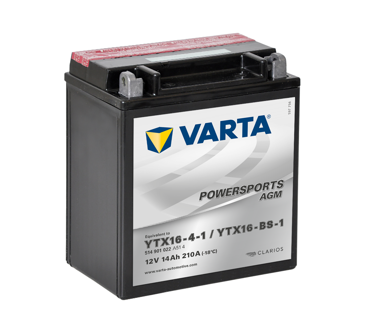 - VARTA AGM MC Batteri 12V 14AH 210CCA (150x87x161mm) +venstre YTX16-BS-1