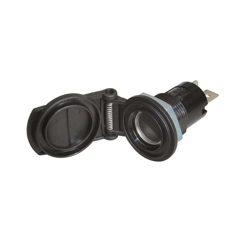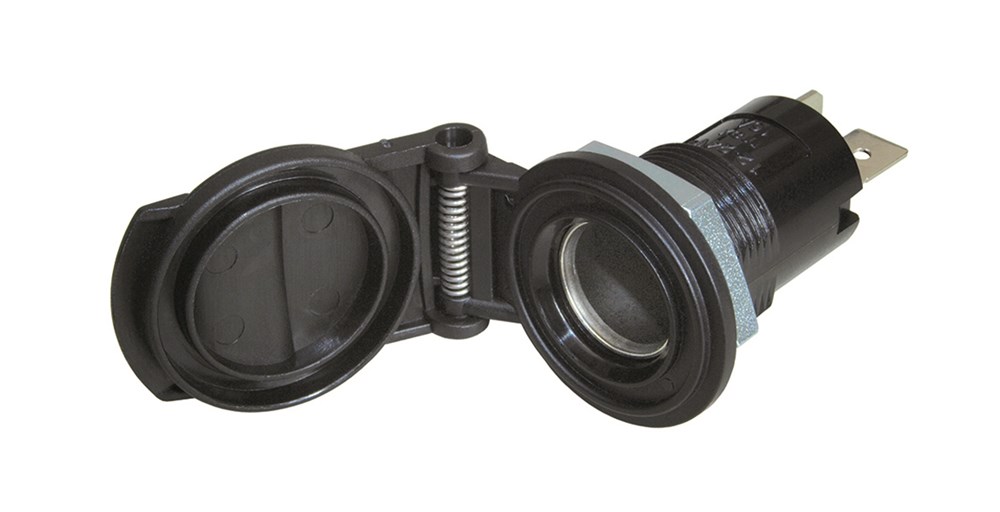 DIN uttak 12/24V m/fjær - for innfelling - sort