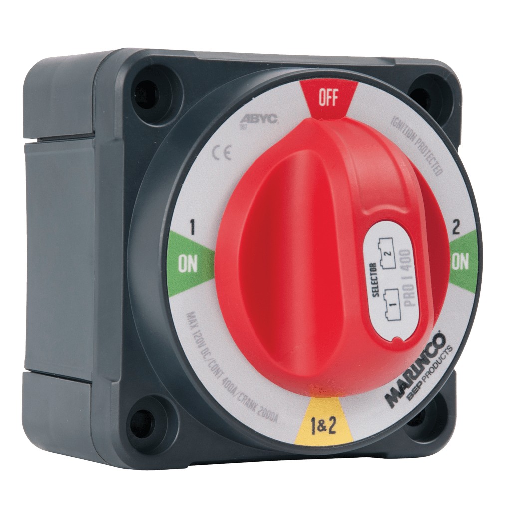 Posisjon 1 & 2 : Kombinerer begge batterier til både start og forbruk.