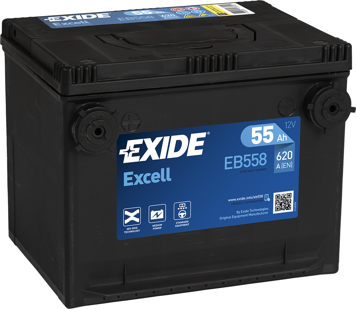 - EXIDE STARTBATTERI 12V 55AH (230x180x186mm) +Venstre