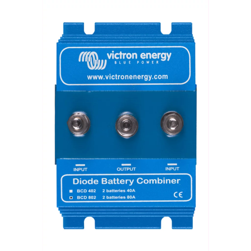VICTRON BCD802 batterisamler 40A Victron skillediode/batterisamler som sikrer strøm til viktige forbrukerer fra 2 batteribanker. Teknisk info Kontinuerlig strømstyrke: 80A Spenningsfall