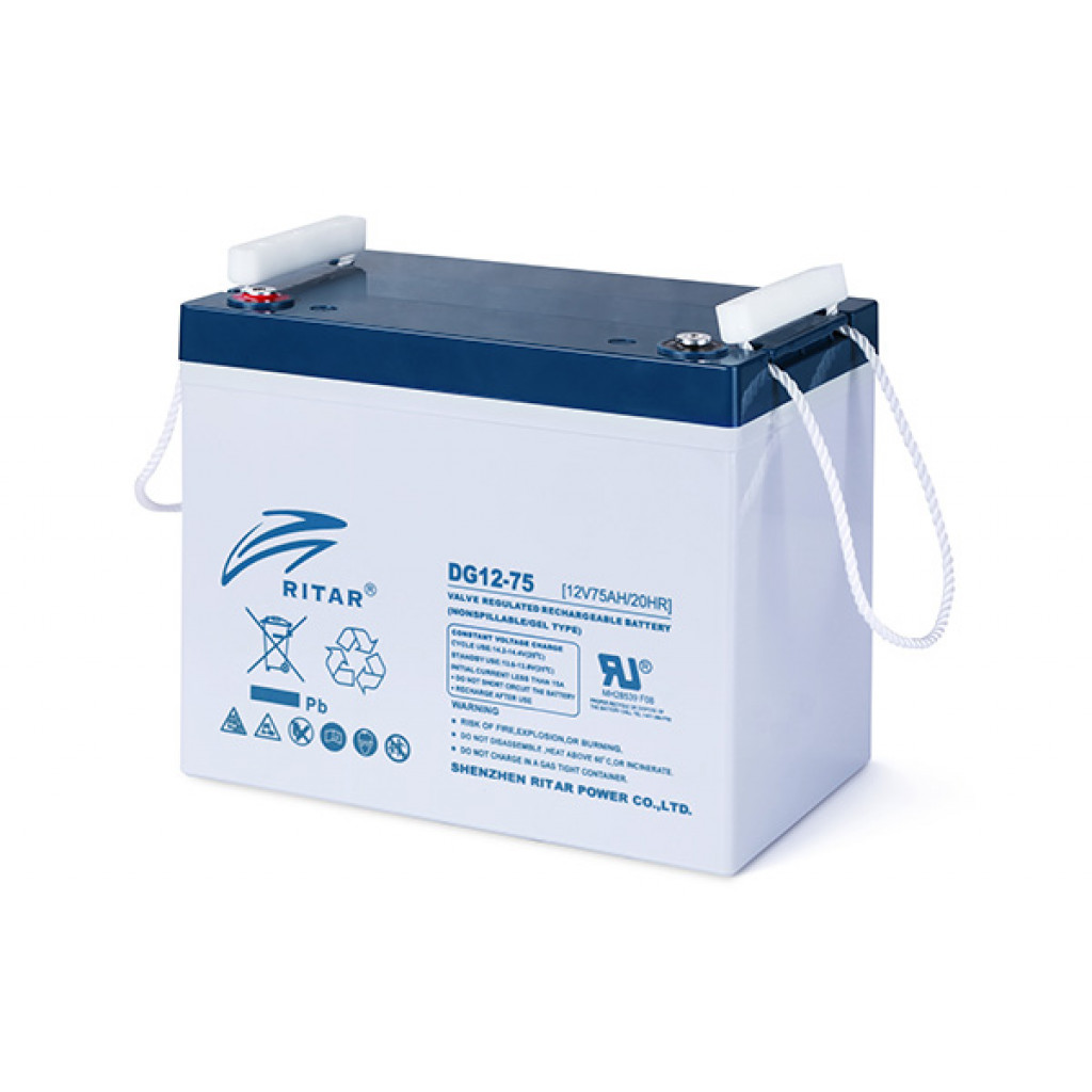 Ritar 12V 75Ah GEL er et forseilet og vedlikeholdsfritt batteri med høy syklusstyrke, ideelt som forbruksbatteri i båt, bobil og hytte. Batteriet gir stabil ytelse ved både lav og høy belastning, og benyttes også i UPS, solcelleanlegg, rengjøringsmaskiner og elektriske kjøretøy.