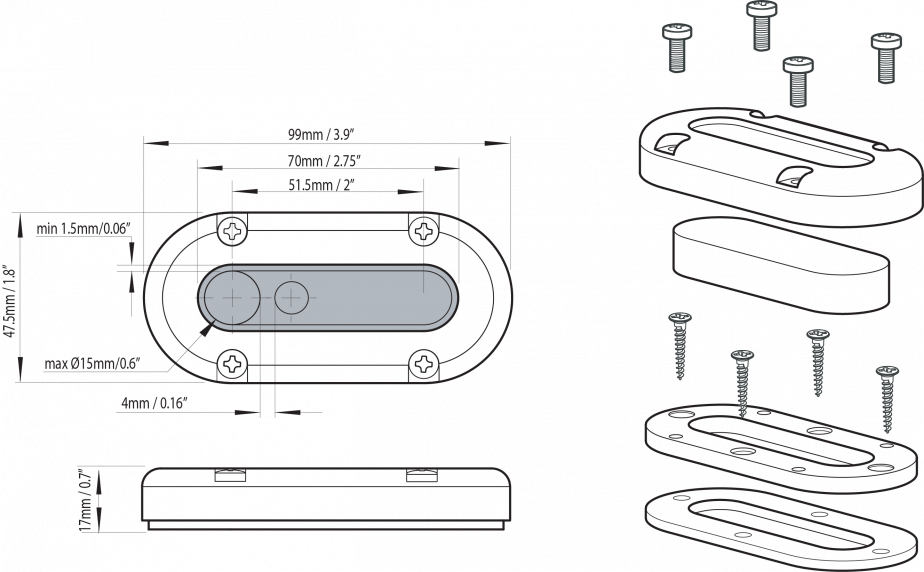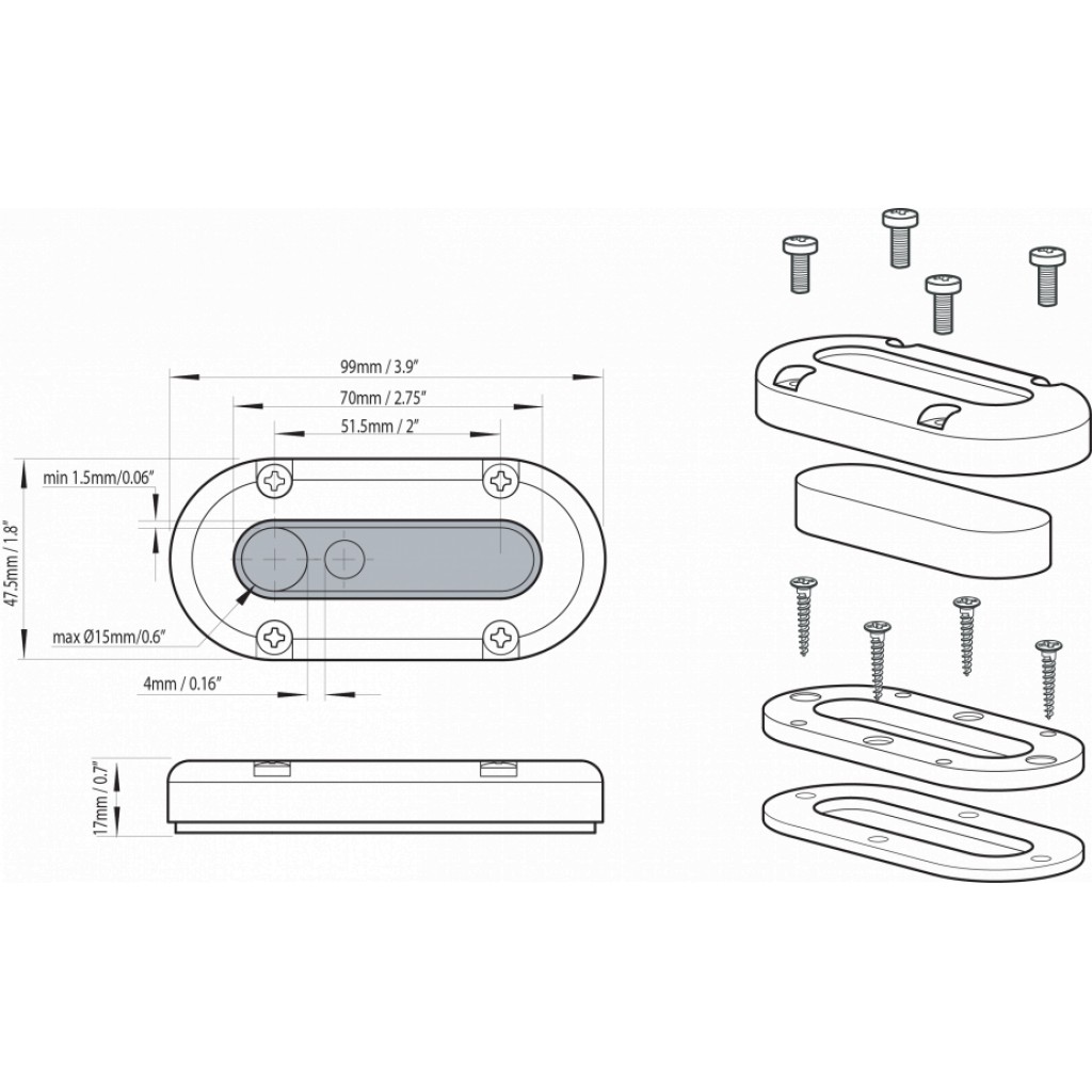 Laget av anodisert aluminium som gjør den godt egnet til båt og bobil.