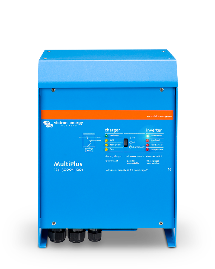 MultiPlus er en kraftfull ekte sinuskurve inverter, en avansert batterilader som har adaptiv ladeteknologi og høyhastighets AC overføring bryter i en enkel, kompakt kabinett.
