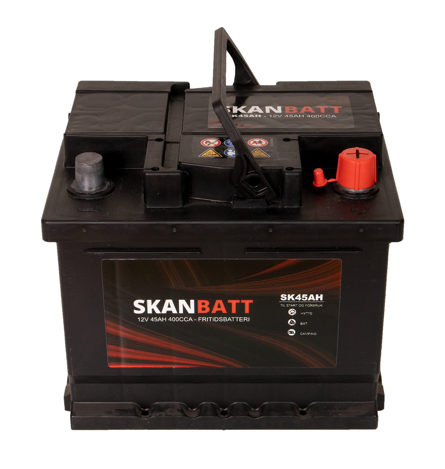 - SKANBATT Fritidsbatteri 12V 45AH 400CCA (207x175x175/175mm) +høyre