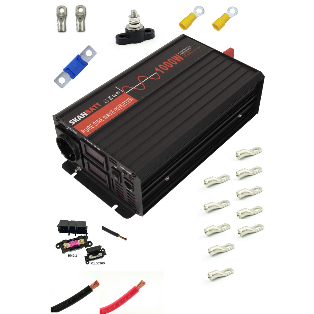 - Inverter Strømpakke 1000w m/kit 2m kabel