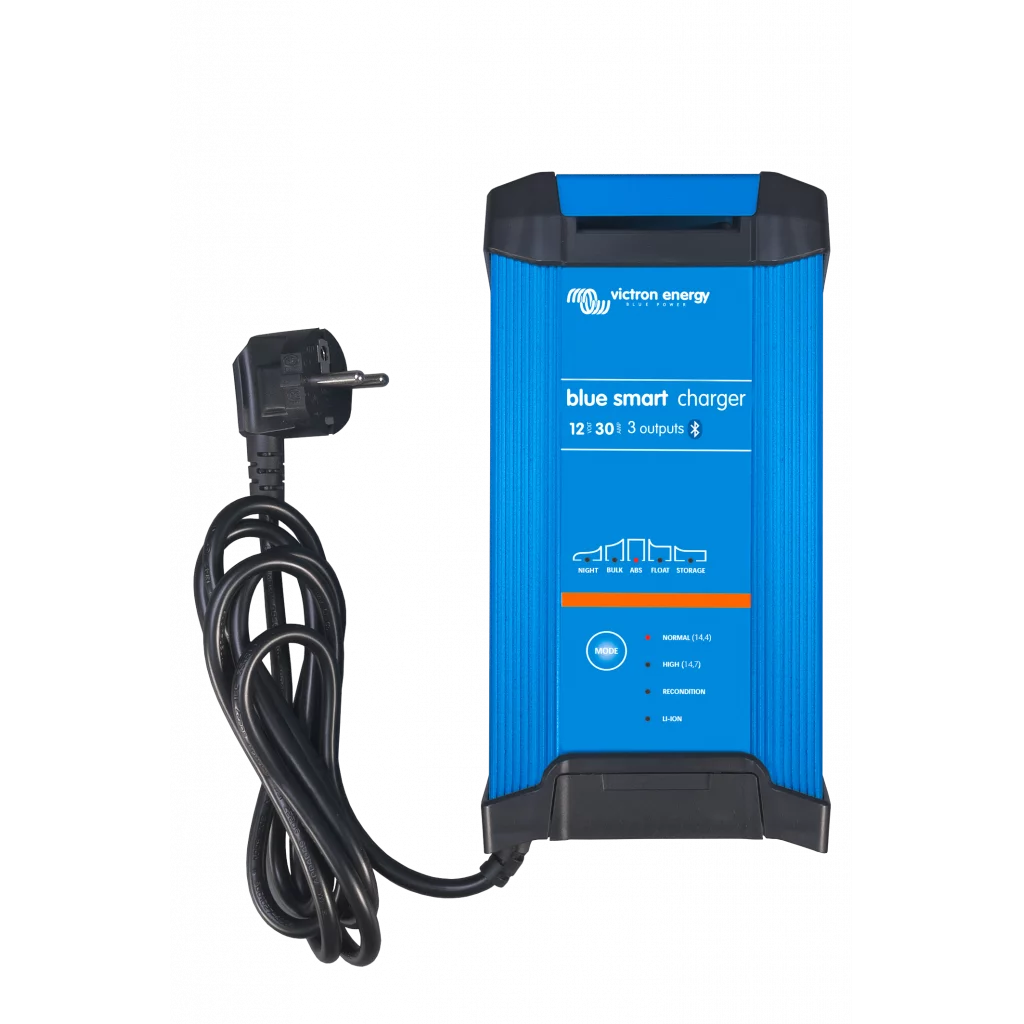 Verdier under er fra Victron sitt 230VAC datablad for Blue Smart IP22-serien (kolonnen for 12V, 3 outputs (30A)).