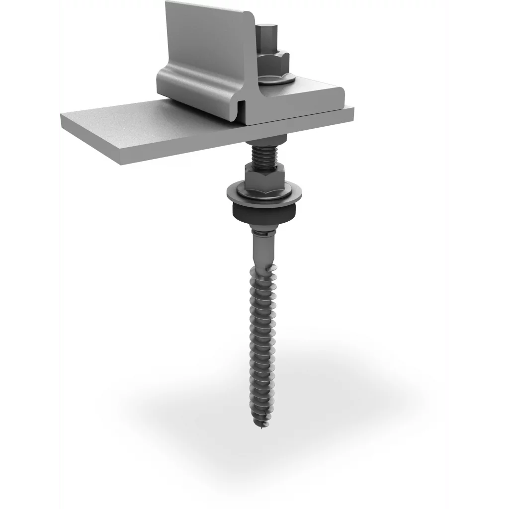 K2 SingleRail Hanger Bolt Climber Set M10x180 with fiber cement seal. For fixing the K2 Systems components in the timber substructure, suitable for corrugated fibre cement roofing. General approval. Material: Stainless steel A2/ Aluminium/ EPDM