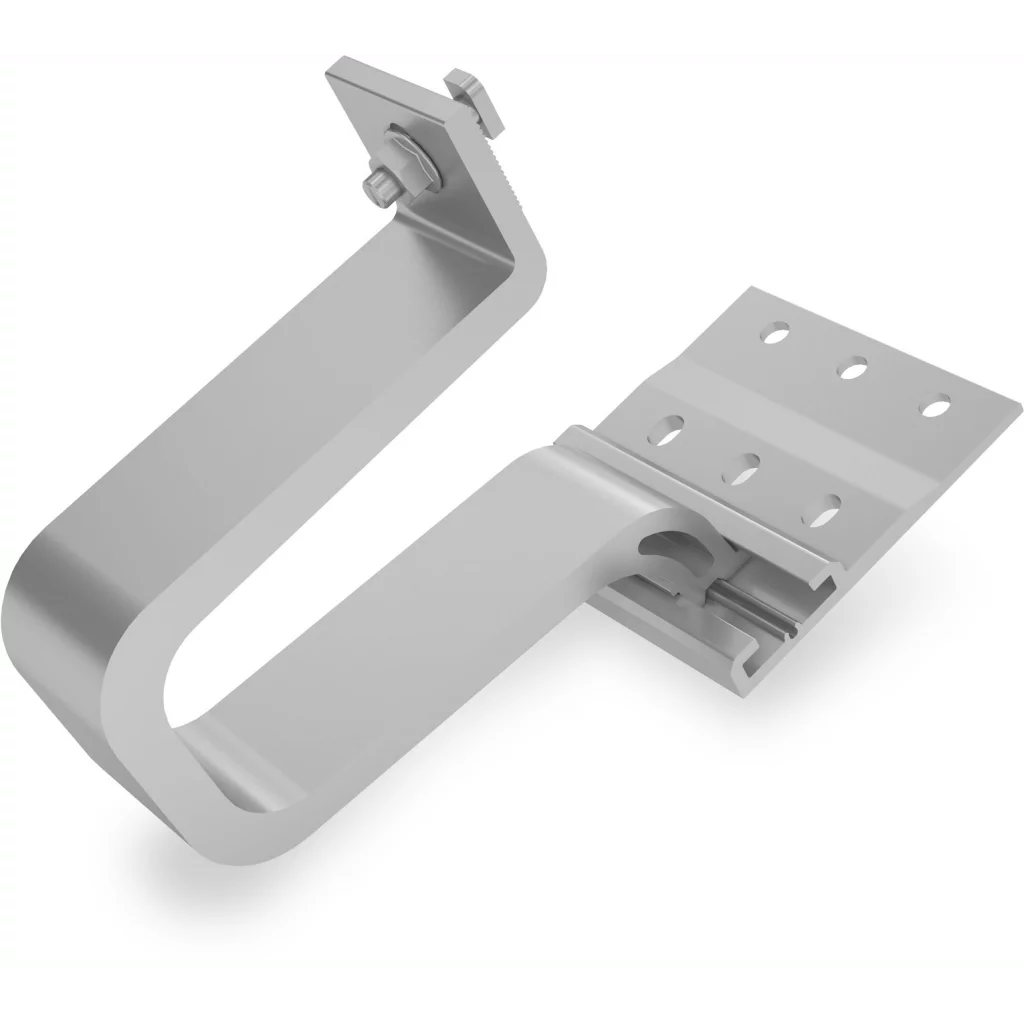 To fasten K2 system components to tile roofs. Slotted bore hole bracket for installation and height adjustability of the SingleRail. Including T-Bolt and Locking nut for SingleRail assembly. Only to be used in combination with a sheet metal roof tile. Material: Aluminium EN AW-6063 T66