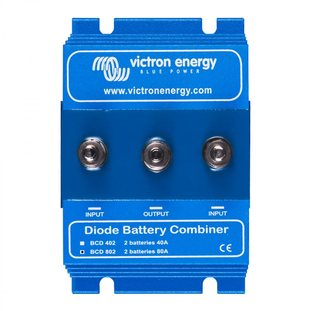 VICTRON BCD802 batterisamler 80A Victron skillediode/batterisamler som sikrer strøm til viktige forbrukerer fra 2 batteribanker. Teknisk info Kontinuerlig strømstyrke: 80A Spenningsfall