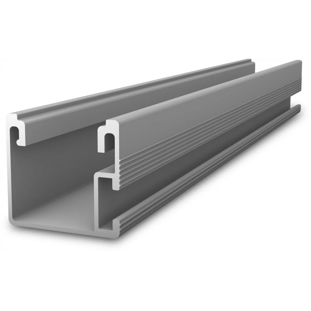 Mounting rail with side-connection and static confirmation in K2 Base. Can be used variably for different roof connections. Length: 5,95 m. Material: Aluminium EN AW-6063 T66
