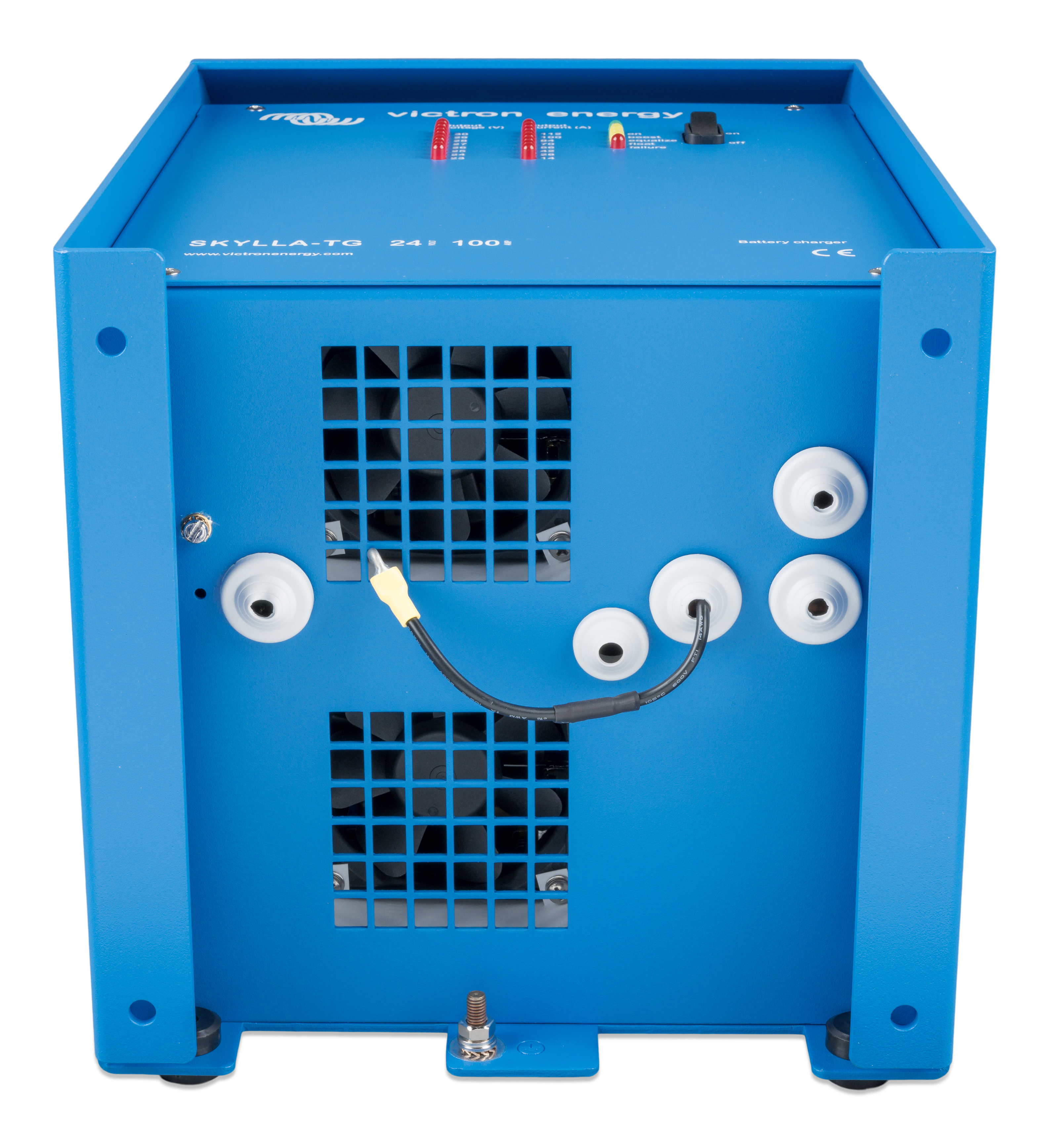 En full nominelt effekt utgang og en 4 Amp utgang. Ladningsspenningen kan finjusteres for å passe ethvert batterisystem. Input for laderen er 230V på 50/60HZ. Ladesspenning kan måles direkte på batteriterminalene for å kompensere for tap av spenning på grunn av motstand fra ledningene. En ekstern sensor gjør det mulig å måle batteriets temperatur og kompensere tilsvarende slik at ladespenning blir optimal.