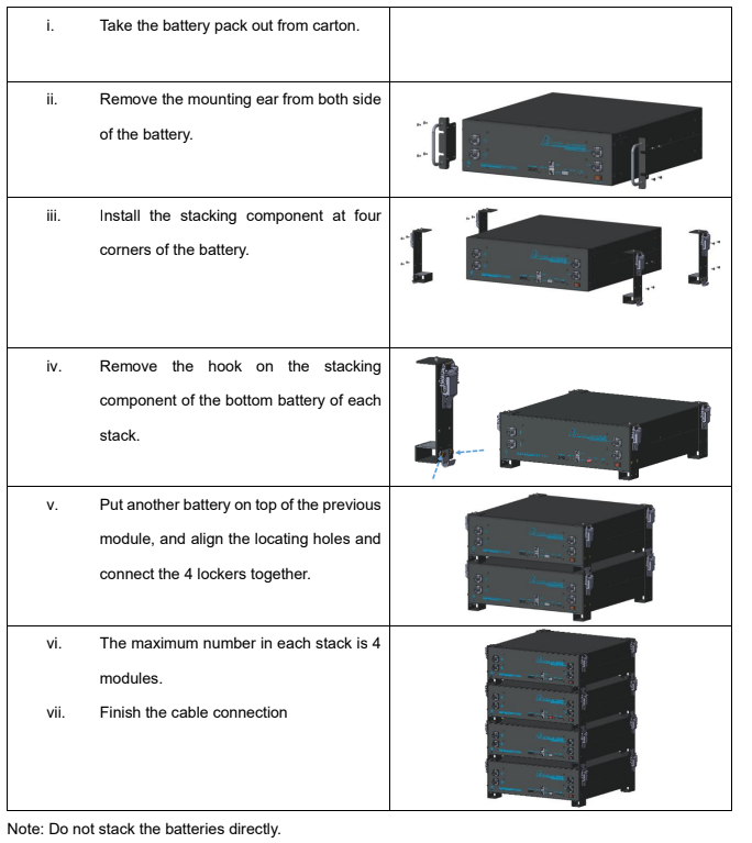Moduelene kan brukes til 1, 2, 3 eller 4 rack batterier. Maks 4 stk Rackmoduler i høyden.