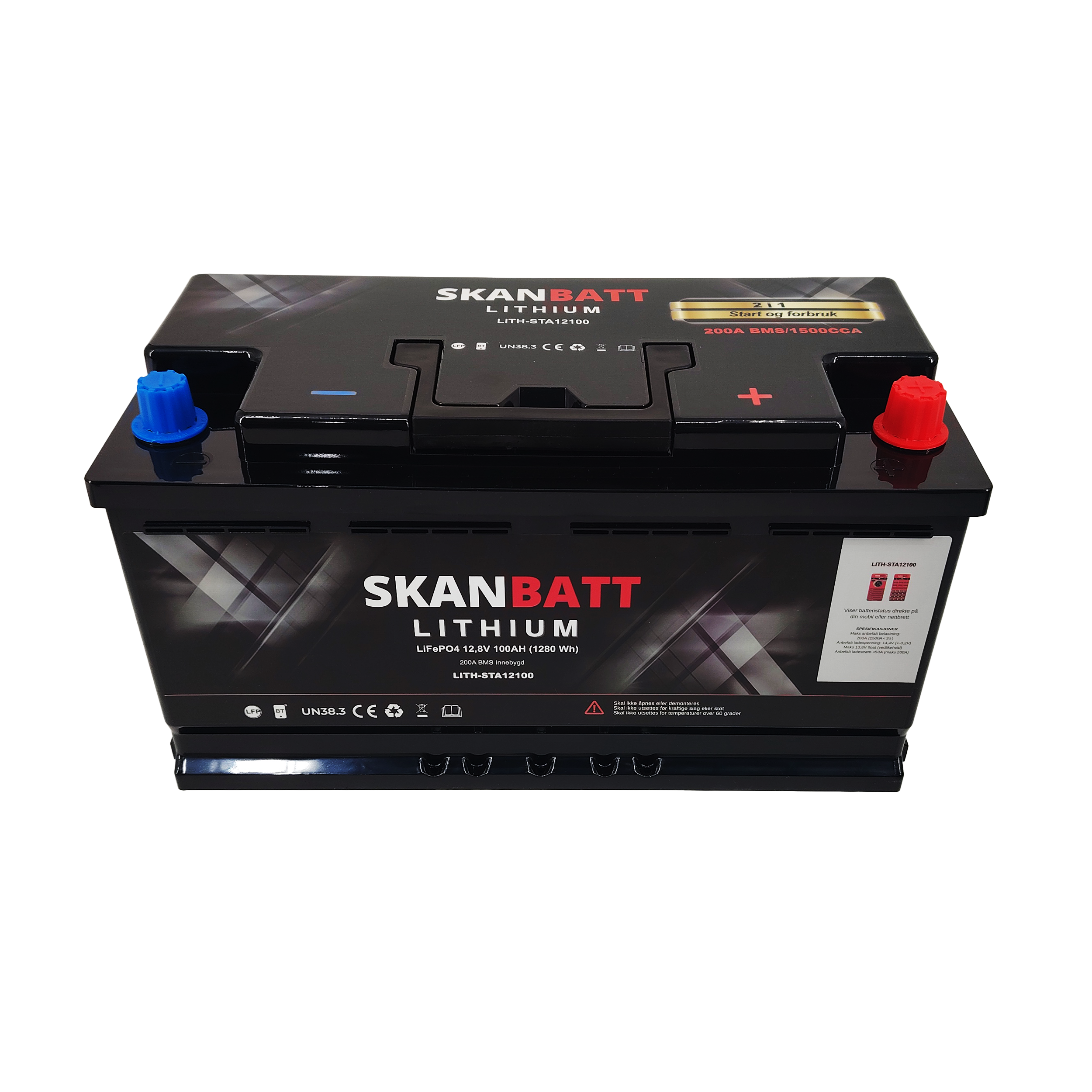 SKANBATT Lithium Start- og forbruksbatteri 12V 100Ah 1500CA - Bluetooth