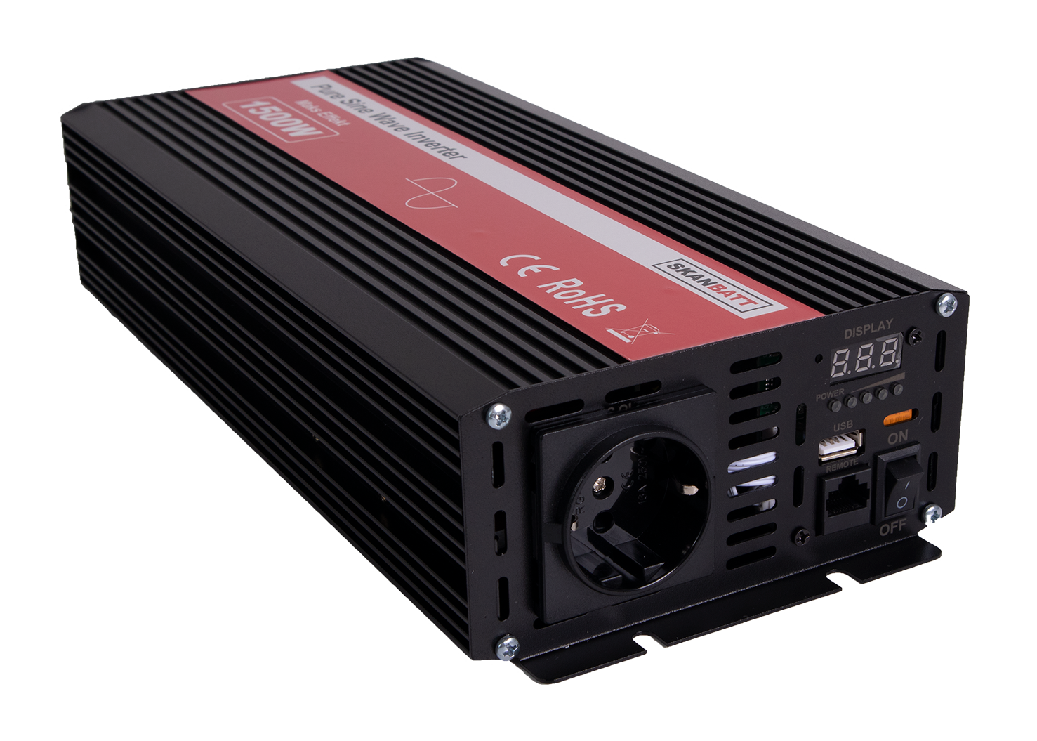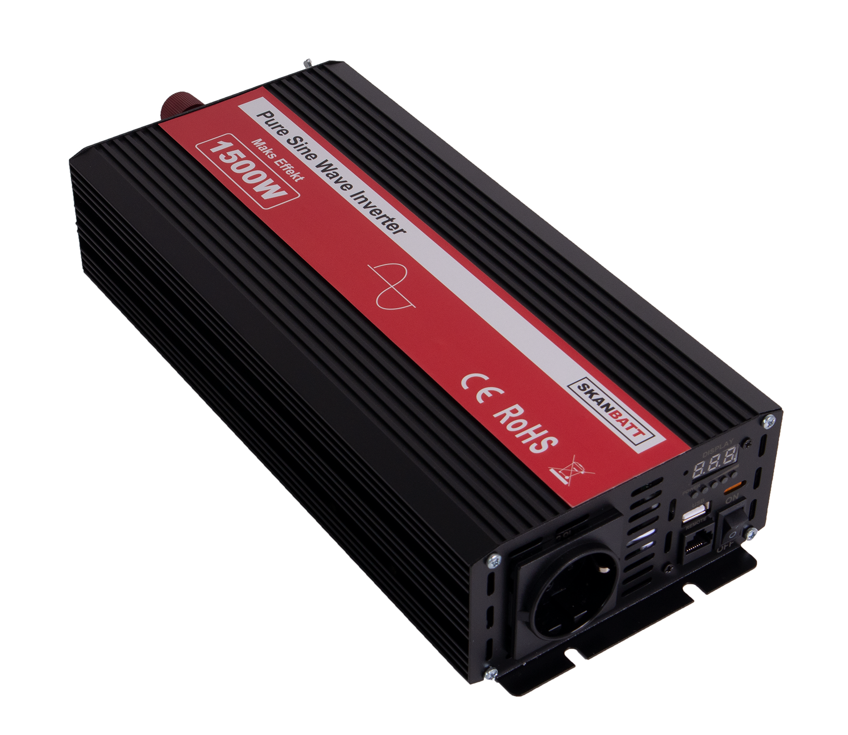 SKANBATT Inverter 12V 1500W Ren Sinus m/Kablet Fjernkontroll