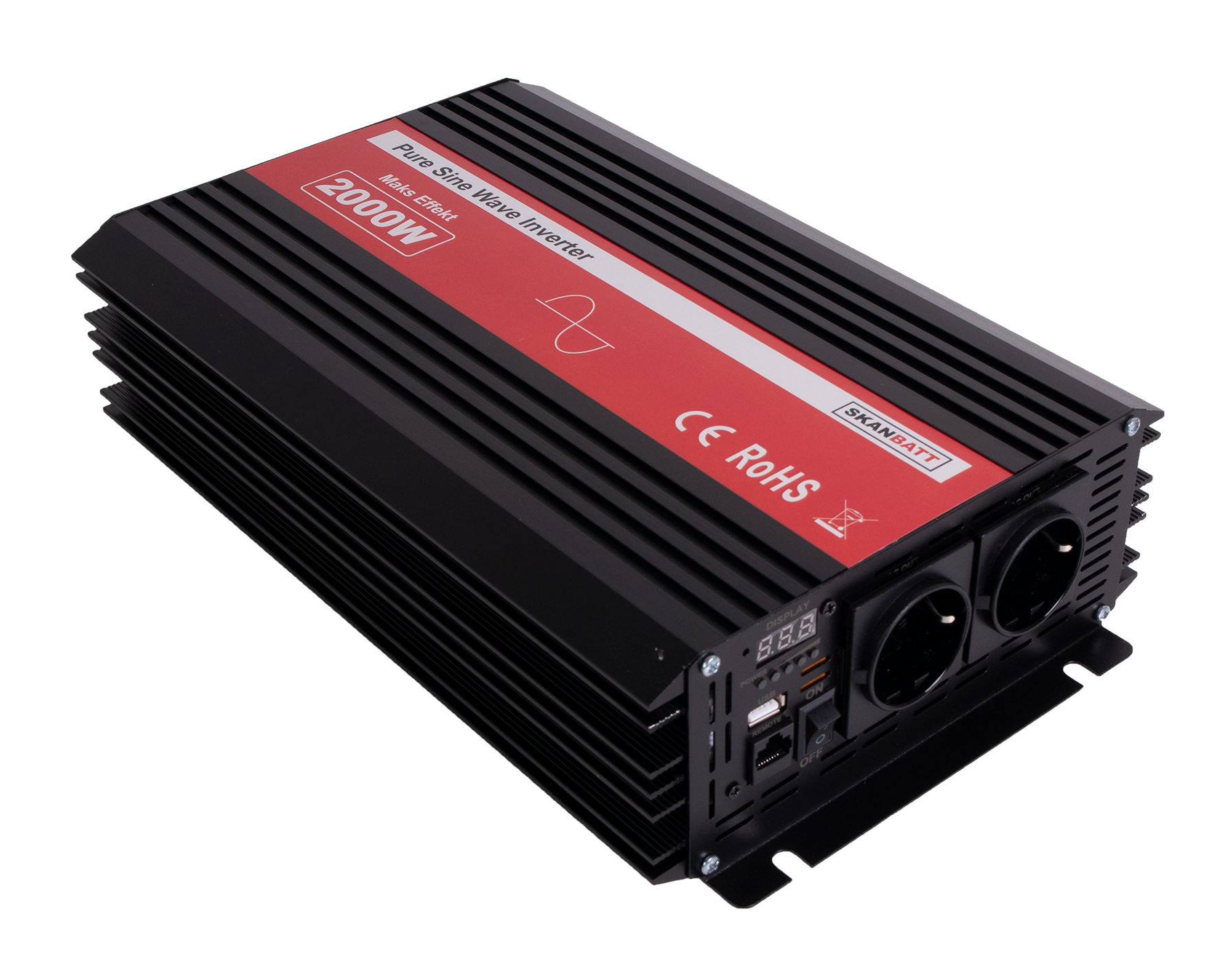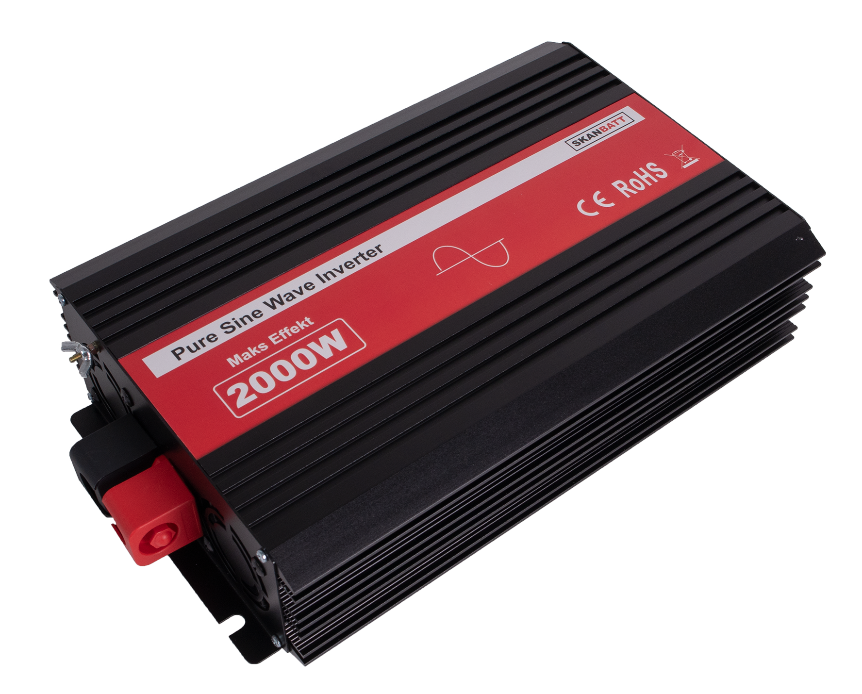 SKANBATT Inverter 12V 2000W Ren Sinus m/Kablet Fjernkontroll