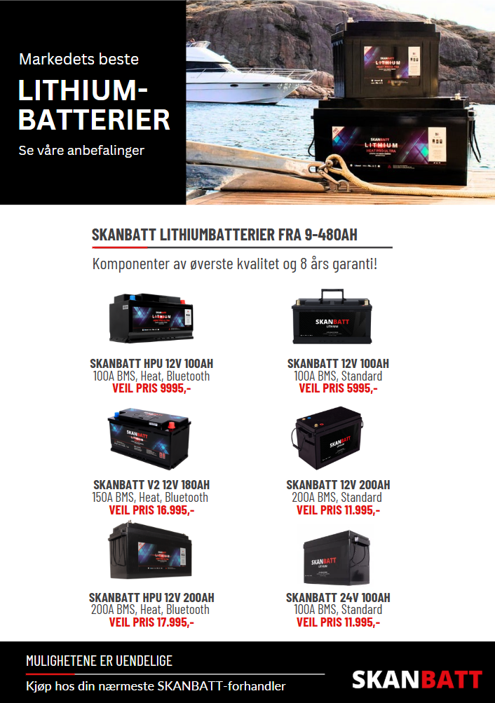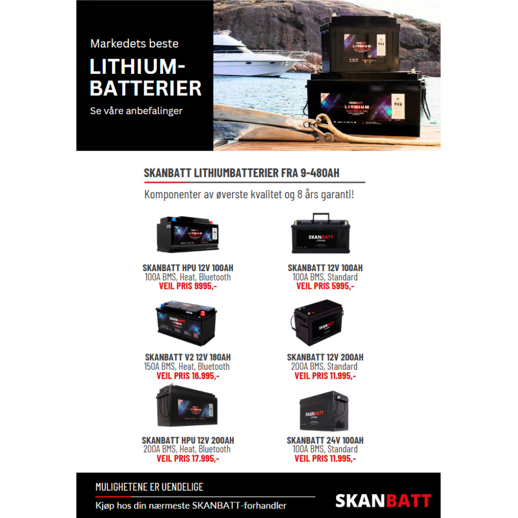 Praktisk A5-folder med veiledende priser på våre mest populære lithiumbatterier og en tabell som viser fordeler med lithium VS blybatterier. Perfekt for plassering ved kassen eller i utstillingen, hvor kunder enkelt kan få en oversikt over våre løsninger. Et fint verktøy for å inspirere til kjøp og