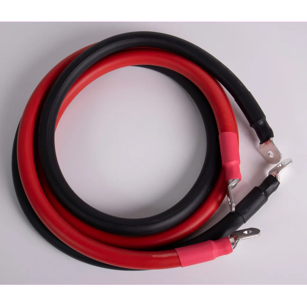 Myk kvalitetskabel på av type "sveisekabel" 1,4m med påmontert 4 stk presskabelsko (8mm hull) og krympestrømpe.